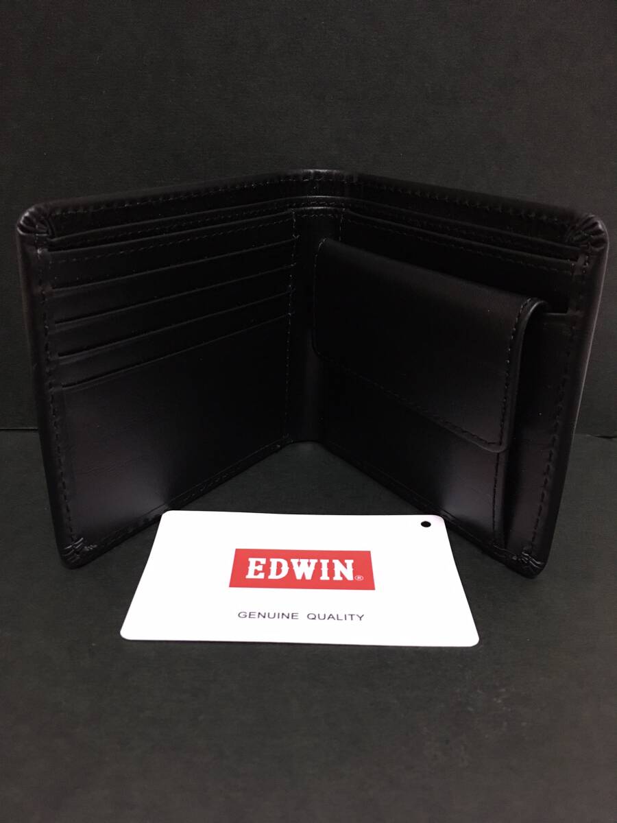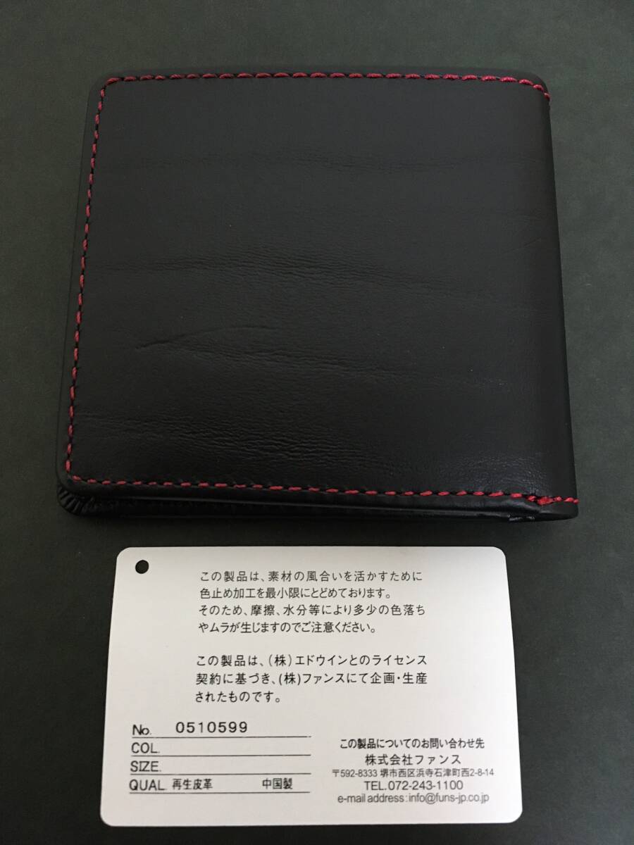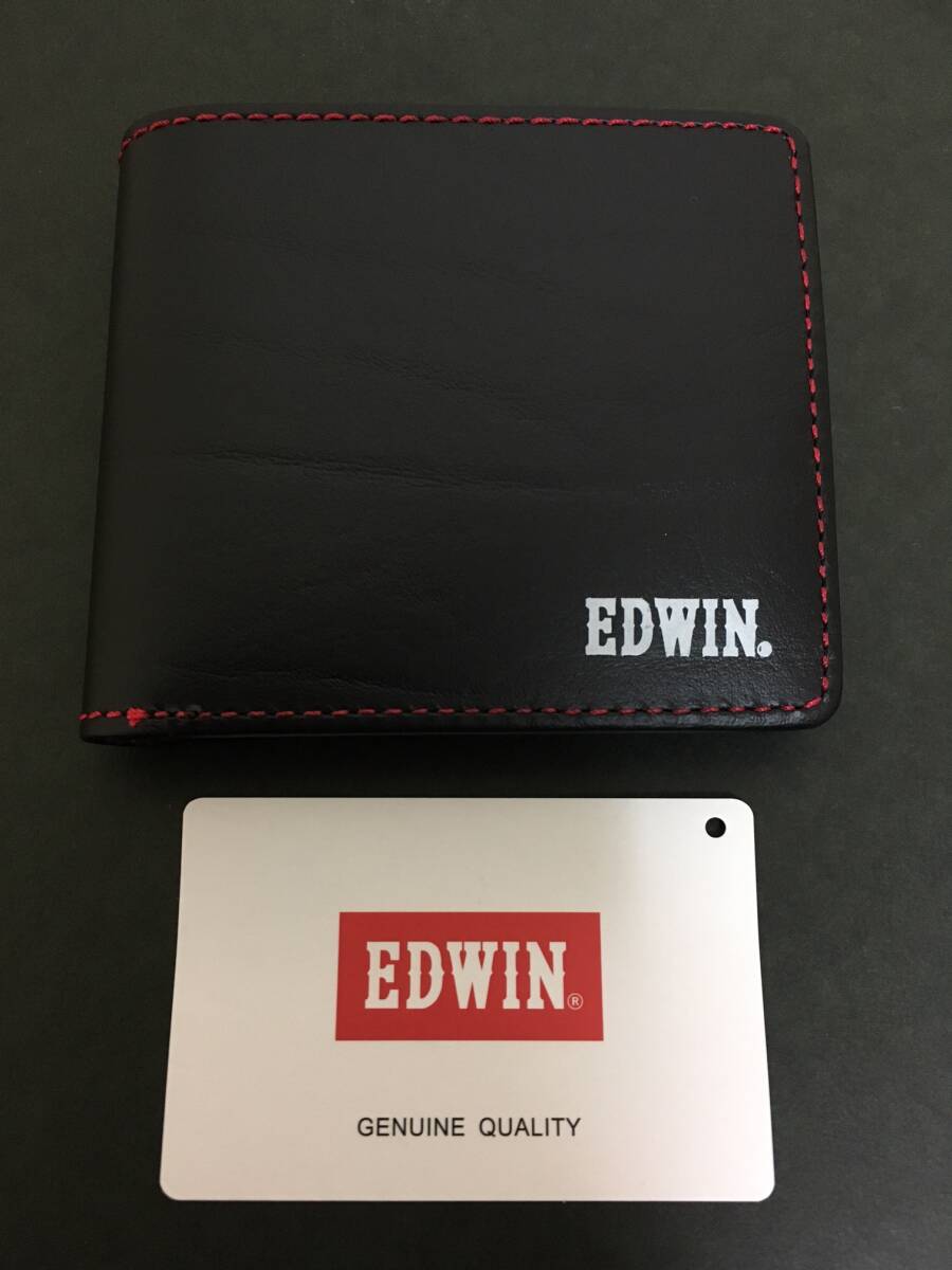 EDWIN/エドウイン 二つ折り財布☆彡 ブラック×レッド☆ 小銭入れあり ボンデッドレザー 財布 ウォレット 新品 ファンス