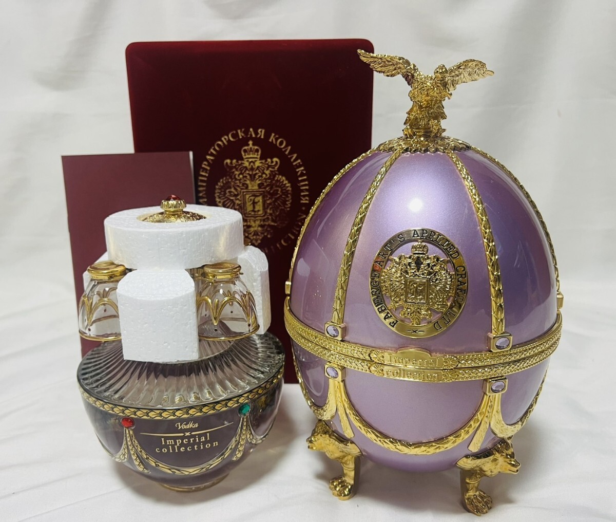 ラドガ インペリアル コレクション メタリック ライラック ウォッカ ヴェネツィアングラス4個 冊子 エッグ ベロアケース プラケース 外箱 オリジナル紙袋付き 未開封品| 出价者 | 信用 | 价格 | 时间 |