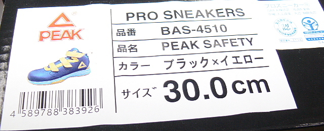 PEAK ピーク安全靴 PRO SNEAKERS BAS-4510 PEAK SAFETY ブラック&イエロー サイズ30㎝ 未使用品格安です。| 出价者 | 信用 | 价格 | 时间 |