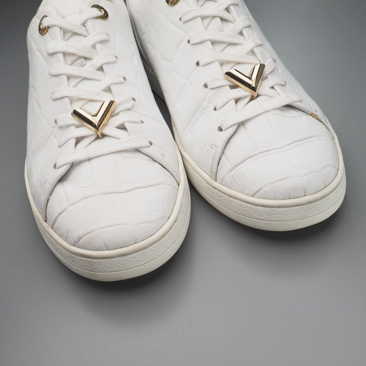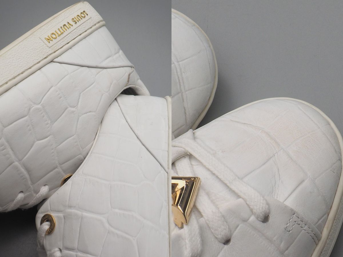 | GS4899//*ルイヴィトン/LOUIS VUITTON*メンズ39.5/フロントローライン/エッセンシャルV/クロコ型押し/レザースニーカー/ローカット/靴/白/ホワイト | |||