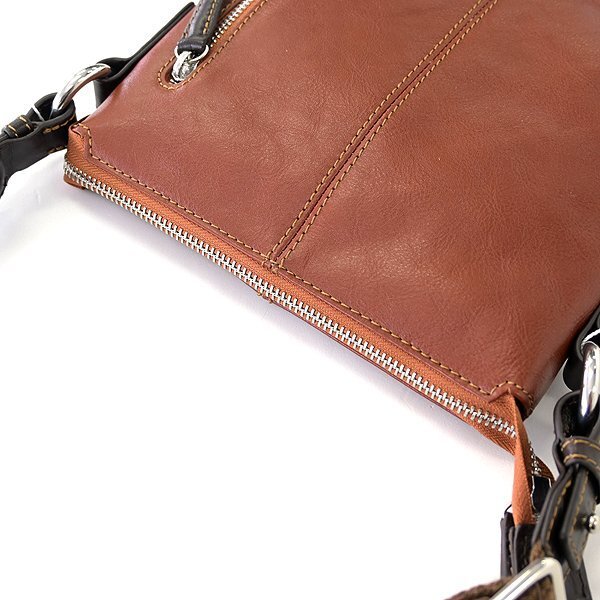 牛革を使用した上品な大人のカジュアルショルダーバッグです。 本体素材にはシュリンクレザーを使用しており、使い込む程に増す上質な牛革の風合いや、飽きがこない上品でシンプルなデザインが魅力です。 ベルト付け根をギボシで固定することで、シンプルなディティールの中にデザイン性と高級感をプラス。 A5サイズ収納可能なサイズ感で、外側にはスマートフォンやパスケースなどの小物を収納できるファスナーポケットを装備しています。 |