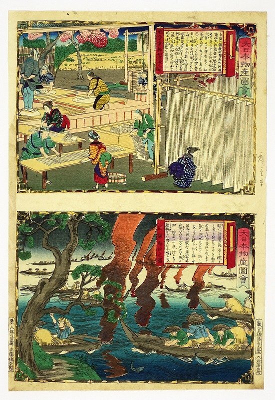 題名 大日本物産図会 能登国 素麺製造ノ図・鯖釣之図 上下