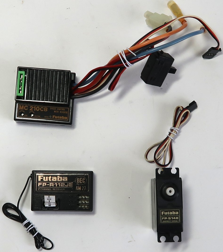 出品は画像の物が全てです。使用品ですので多少の汚れや擦れは有ります。プロポの状態は中古としてみれば綺麗な状態です。手に入れた時にプロポのみだったので受信機、サーボ及びアンプなど私の方で付属させました。受信機はFP-R112JEです。サーボはFP-S148です。アンプはMC210CBです。バンドは箱の記載の1が付属します。テストしましたが操作はできましたし、問題なく動作しております。アンテナが若干曲がっています。あとプロポの電池ケースが昔のマンガン電池用に設計されているので若干小さめにつくられています。また電池ケースはあまり丈夫ではないので電池を入れるときは慎重にお入れください。それとアルカリ電池を入れてプロポに収める時にマンガン電池を入れた時よりは厚みでるので、プロポの外観のネジを緩めています。こうしないと入らないです。分かることは以上です。出品前にもきちんと基本的な事は問題ないかチェックした上で出品していますが、発送後になにか問題がありましてもサポートは出来ませんし、返品や苦情は一切受け入れられませんのでそれを納得した上で御入札下さい。