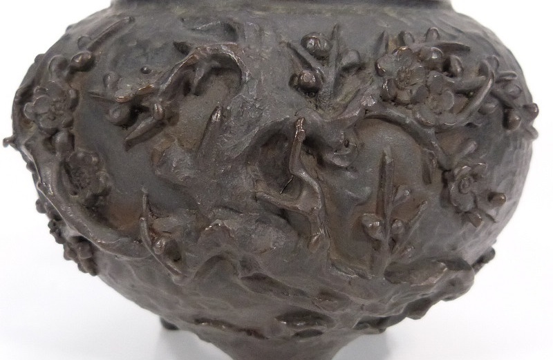 | 商品名 | 《BT》蝋型師 三好三治 作 蝋型鋳銅 浮彫梅文 三足香炉 透蓋 | ||||