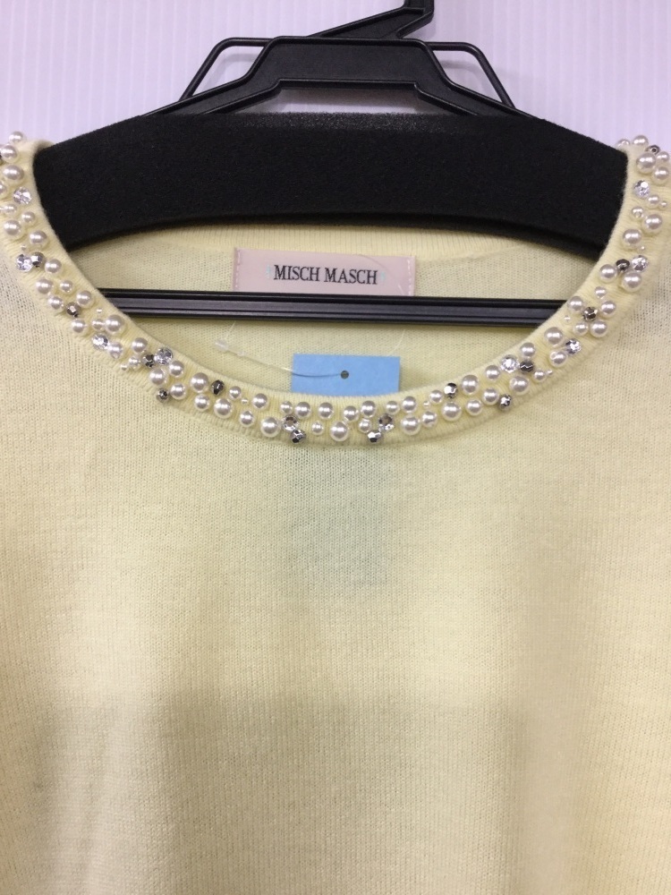 | 管理番号:43^125832 ミッシュマッシュ イエロー 首元飾り ニット 表示サイズ:M 実寸(参考)
