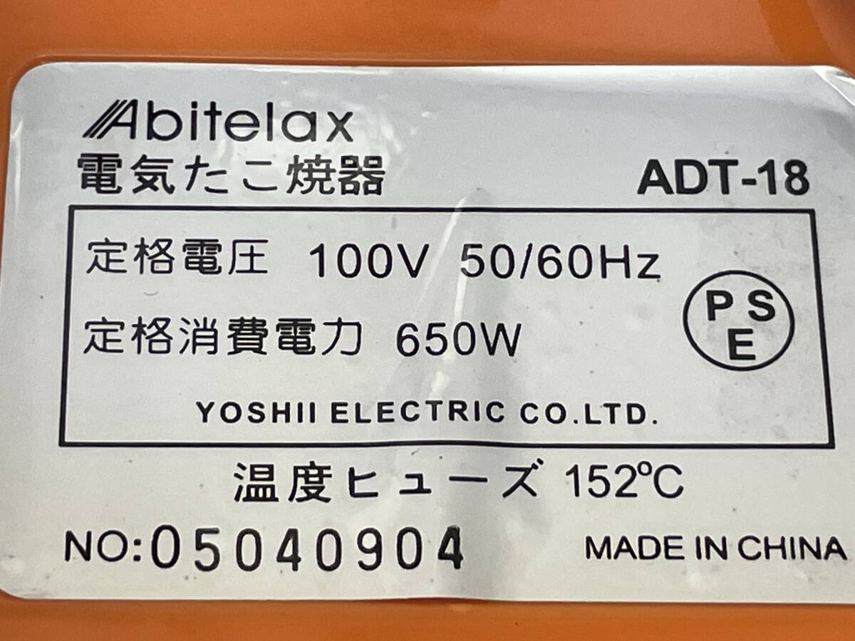 | 【R-1-R33】 Abitelax 電気 たこ焼器 ADT-18 未使用 | ||