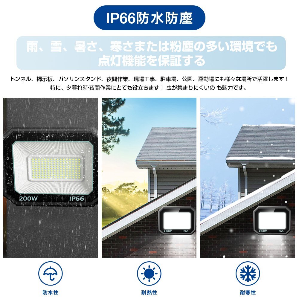 【商品詳細】 ◆超高輝度200W、効率抜群: 超高輝度LED投光器、全252個チップのデザインを採用して、定格光束25000lmに達します。強化ガラスを採用して、高輝度昼光色を生成できます、高光透過率を実現させました。照射効果、透光性と耐震性も向上します、反射效率アップ!120°の照明角度ができますので、広い範囲に照射可能になり、屋外と部屋の隅々をより効率的に照らすことができます。 ◆優れた耐久性、放熱性up: 熱は投光照明の寿命が短くなる重要な理由です。一般的の従来品は明るさが使用時間とともに徐々に減少することになります、そのため、長時間で明るさを維持できません。弊社の新製品は他社さんを徹底研究して、高品質黒アルミ合金を採用されます、充足な冷却スペースが確保され、同時に冷却面積が増加します。放熱効果が大幅に向上し、散熱性能アップ!長寿命点灯することを実現できます。さらに、他社の従来品に比べて耐久性も改善され、最大50,000時間以上持続します。 ◆IP66防水防塵、長寿命化: LEDライトIP66防水防塵に達し、雨、雪、暑さ、寒さまたは粉塵の多い環境で正常に機能することを保証します。適用範囲を拡大するとともに、耐用年数も延長し、長寿命化を実現させました。庭、庭、倉庫、ガレージなどの屋外照明に最適です。緊急時でも、投光器があれば大きな役割を果たすことができます。 【保証】 ◆当商品は12っヶ月保証となります。 ◆お届けから1週間以内にご連絡のあった不良品の保証対応の送料は当方が負担いたします。 ◆保証期間内の不良品ですが、交換のみ対応しております。往復送料はお客様負担となります。在庫がない時だけ返金しますので、ご了承ください。 |