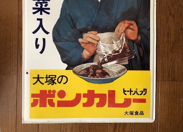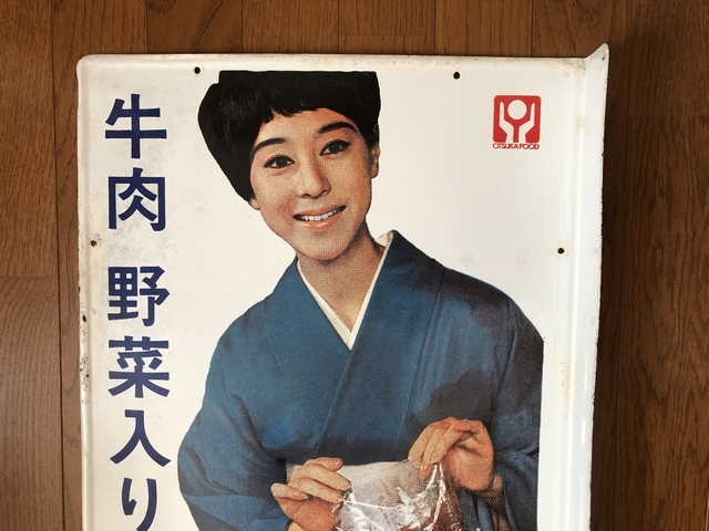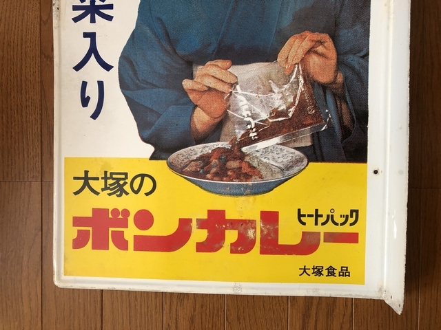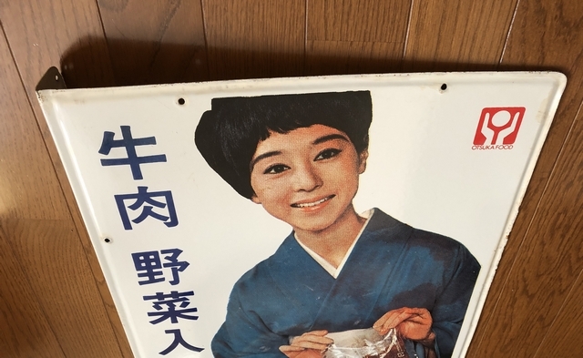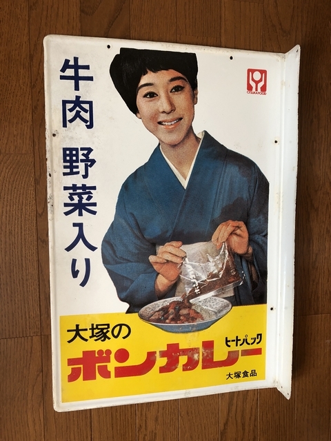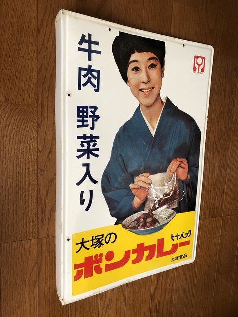 即決【昭和レトロ百貨店】珍品 松山容子さん ボンカレー 透明パック 青色着物 大塚食品 袖付両面 ホーロー看板 当時物 ビンテージ 広告 アンティーク 街並み 商店街| 出价者 | 信用 | 价格 | 时间 |