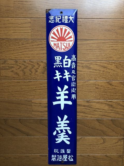 即決【昭和レトロ百貨店】戦前 大禮紀念 羊羹 片面 ホーロー看板 当時物 ビンテージ 広告 アンティーク 琺瑯 街並み 商店街 和菓子屋さん ようかん 聖護院松屋旭製| 出价者 | 信用 | 价格 | 时间 |