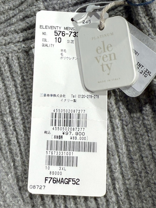 イタリア・フィレンツェの見本市「ピッティウオモ」の常連として名高い高級ブランド 《eleventy-イレブンティ-》 マルコとパオロの2人のデザイナーで展開し、自分たちが着たいスポーツウエアのブランドがないことから 自分たちの持っているノウハウでスポーツウエアのブランドを立ち上げたのがスタート。 クラッシック&モダンカジュアルなスタイルをクリエイトする「イレブンティ」の名は一瞬にして世界的な地位に。 時代にとらわれず、長きにわたり人々に愛され続けているイタリアブランドとなります。 そんな《eleventy-イレブンティ-》の、上質な素材使いとイタリアらしい洒脱な色使いが楽しめるカシミヤ混ウールニットカーディガン。 上質なウールをベースに、惜しみなくブレンドされたカシミアが、とろけるような柔らかさと、唯一無二の保温性を実現。 さらに、タイト過ぎないリラックスフィットながら、型崩れしにくい伸縮性と耐久性も兼ね備えております。 そして、魅惑の3トーンが織りなす極上ボーダーは、普通のカーディガンとは一線を画す洒脱な遊び心を漂わせ、 Tシャツの上に羽織るだけで、たちまちこなれたリゾートカジュアルが完成! エレガントな曲線を描くショールカラーの襟元は、Tシャツやカットソーはもちろん、シャツとの相性も抜群。 そして、肉厚なリブ編みは、重厚感がありながらもソフトな風合いとなっており、 ジャケット代わりに使えるほどの存在感で、大人の休日を豊かに彩ります。 大人の余裕とリラックス感をそこはかとなく感じさせるラグジュアリーなショールカラーカーディガンを、この機会に是非ご検討ください。 もちろん新品正規未使用品ですので安心してお求め頂けます。 | |