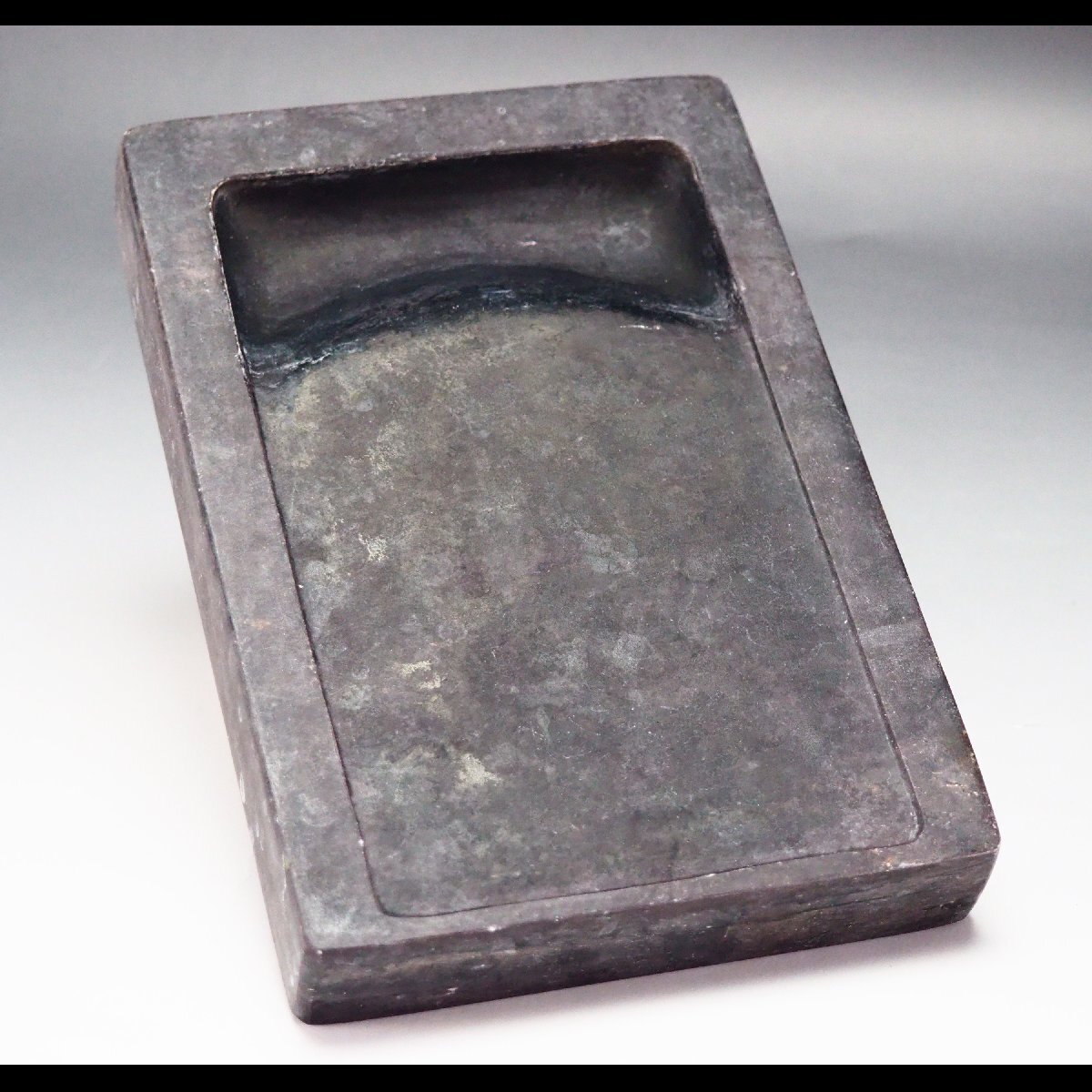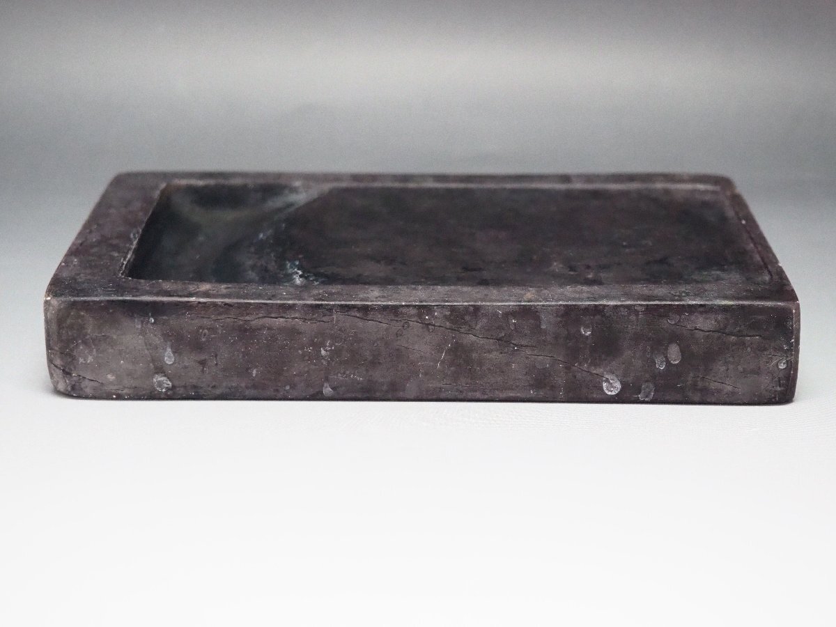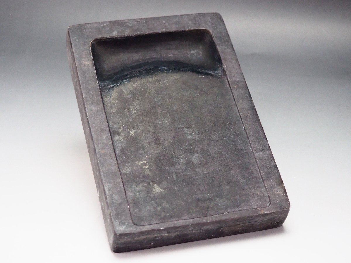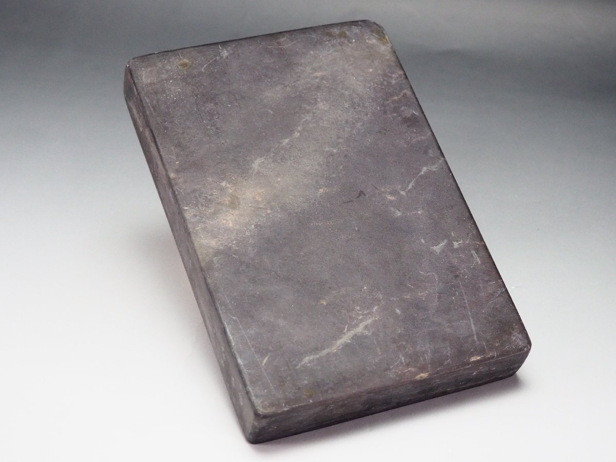 | 《サイズ》 (※全て箱を除く硯本体のサイズとなります) 大きさは 幅 17.8cm ・ 高さ 2.5cm ・ 奥行 12cm ・ 重さ 1402g 【※計測サイズは最大径で計測しております(例;茶釜であれば、幅は鐶付の先から鐶付の先まで、高さは底面から摘みの先までとなります】 | |||