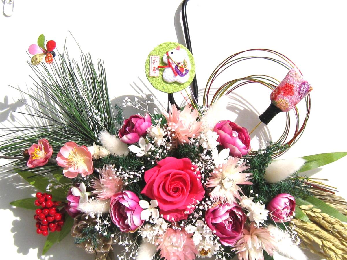 稲穂付き丸締めベースに松竹梅、千両、ローズ、ブバリア、プリザーブドの薔薇、| 出价者 | 信用 | 价格 | 时间 |