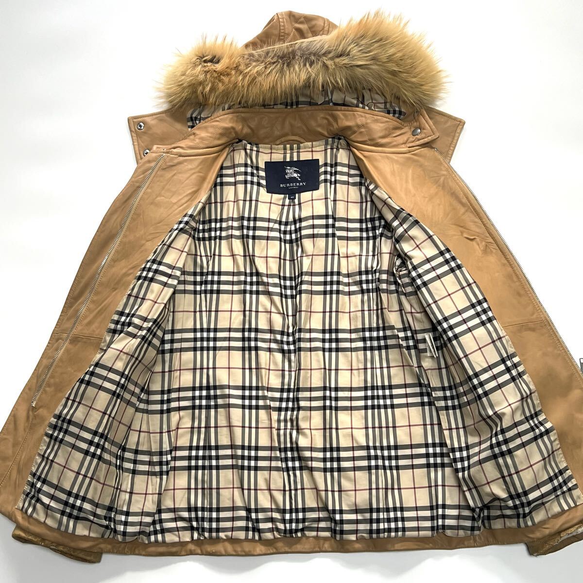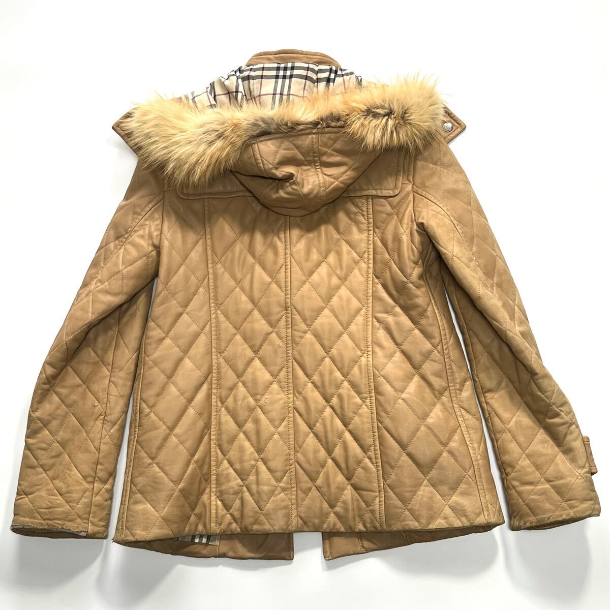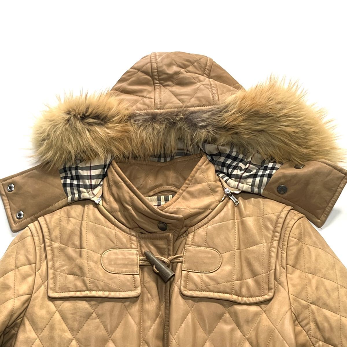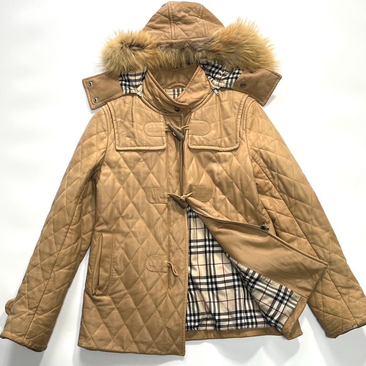 1円〜 バーバリーロンドン ラムレザーダッフルコート キルティング 羊革 フォックスファー 3Way フード ノバチェック ノヴァ キャメル 40 | |||