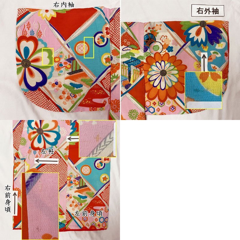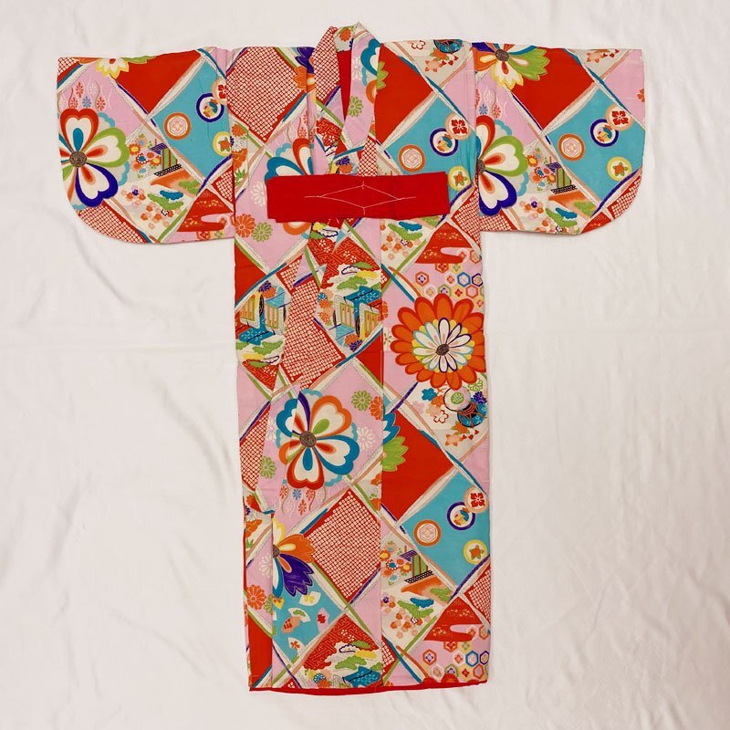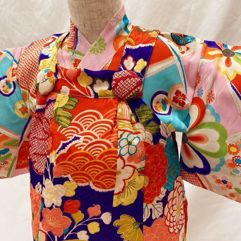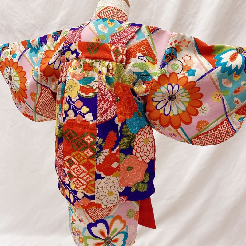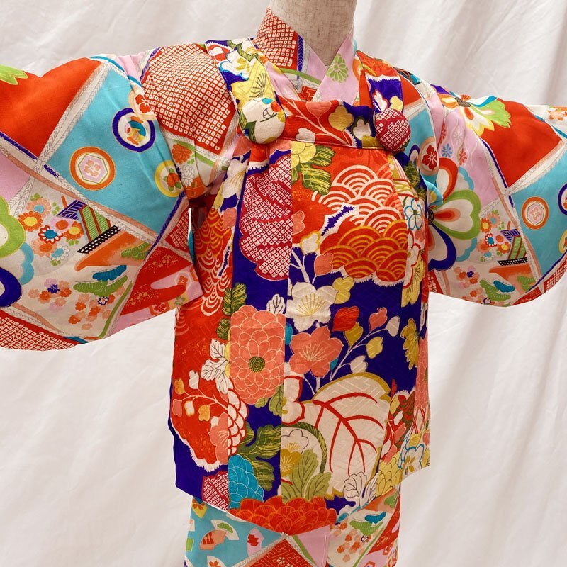 | ◎ベビー着物&被布 女児 お宮参り セミアンティーク 花◎美品 (No.gd) こちらの商品は、着物と被布のセットです。朱色、ピンク色の地に、御所車、鼓、花文様などがある総柄の可愛らしい女の子のセミアンティークのベビー着物とハンドメイド被布のセットです。 着物に中綿が入っており温かみがございます。お宮参りの掛け着の下やお正月、お節句などにもご利用いただけます。体型にもよりますが、大体2歳前後までご利用いただけます。 (着物)一つ身です。しつけ付きの未使用品ですが、保管時にできたと思われる極薄いシミやダメージがございます。ところどころに染ムラもございますが、どれも目立ちません。セミアンティークの風合いとお考え下さい。トルソーへの着付けのため、付紐と左衿のしつけ糸を取っております。 (でんち)着なくなった中古品のセミアンティークの正絹着物をリメイクしたハンドメイド品です。中綿を入れておりません。染ムラがございますが、目立ちません。セミアンティークの風合いとお考え下さい。ハンドメイド品ですので、完璧を求める方はご遠慮ください。 【表地素材】(着物)正絹、(被布)正絹 【色】朱色、ピンク系 *モニターによって色味は実際と異なる場合がございます。 【サイズ】(着物) 裄:38.2cm、肩上げ幅:-cm、丈(肩から):83.2cm、腰上げ幅:-cm、前幅:14.2cm、後幅:15.5cm *素人採寸のため、多少の誤差はご容赦ください。 お求め安い価格での出品ですので、いかがでしょうか? | |