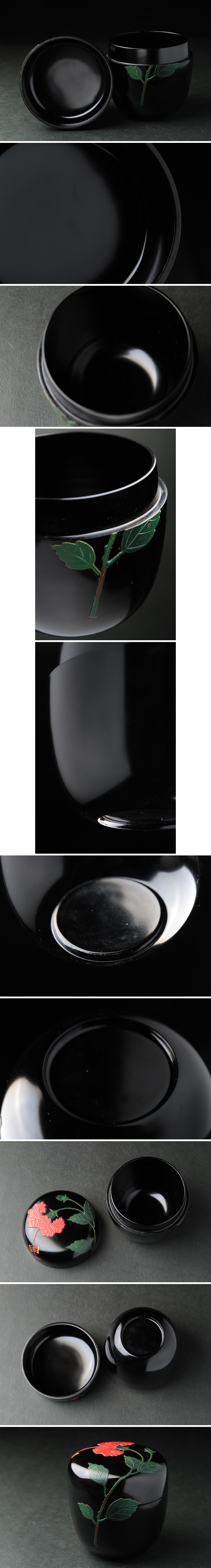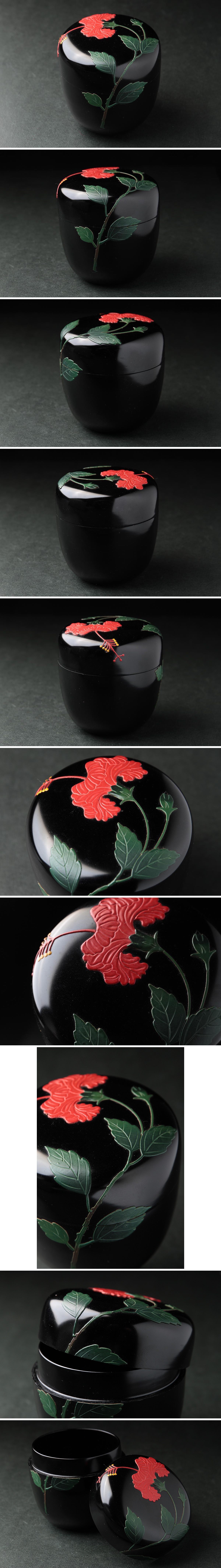 | ◆ 茶道具 琉球漆器 堆錦 ハイビスカス文 中棗 高7cm・堆錦花文棗 茶具 茶器 伝統工芸 漆工芸 検)紅房 角萬漆器 ◆