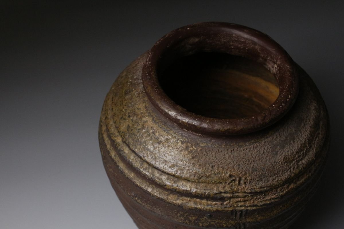 [.WP]25.11 251106F05T* * * 商品詳細 * * * ここでしか出逢うことのできない唯一の美をご紹介させて頂きます。 古備前 自然釉壷 時代を経て深みを増した古備前の壷。 自然釉が生む柔らかな光沢に、胡麻がまるで降りかかったかのように点在し、 土の力強さと自然の景色を映し出しています。 無作為に見えて計算されたかのような釉の変化や胡麻の微細な表情は、 ひとつとして同じものがない唯一無二の美しさ。 手に取るほどに土の温かみを感じ、静かに佇む姿には、 時代古作ならではの落ち着きと奥行きがあります。 茶席や床の間に置けば、自然の風景を凝縮したかのような存在感で、 見る者の心を引き寄せる逸品です。 ■商品内容/ 壷、箱 ■サイズ/横19㎝×高21㎝ 箱:四方12㎝×高26㎝ ■状態/ 経年によるスレ、小傷、汚れ、窯被、僅かな欠けが 箱にスレ、傷、汚れございます。 ※水漏れはございません。 ※写真にてご確認、ご了承の上ご入札下さい。