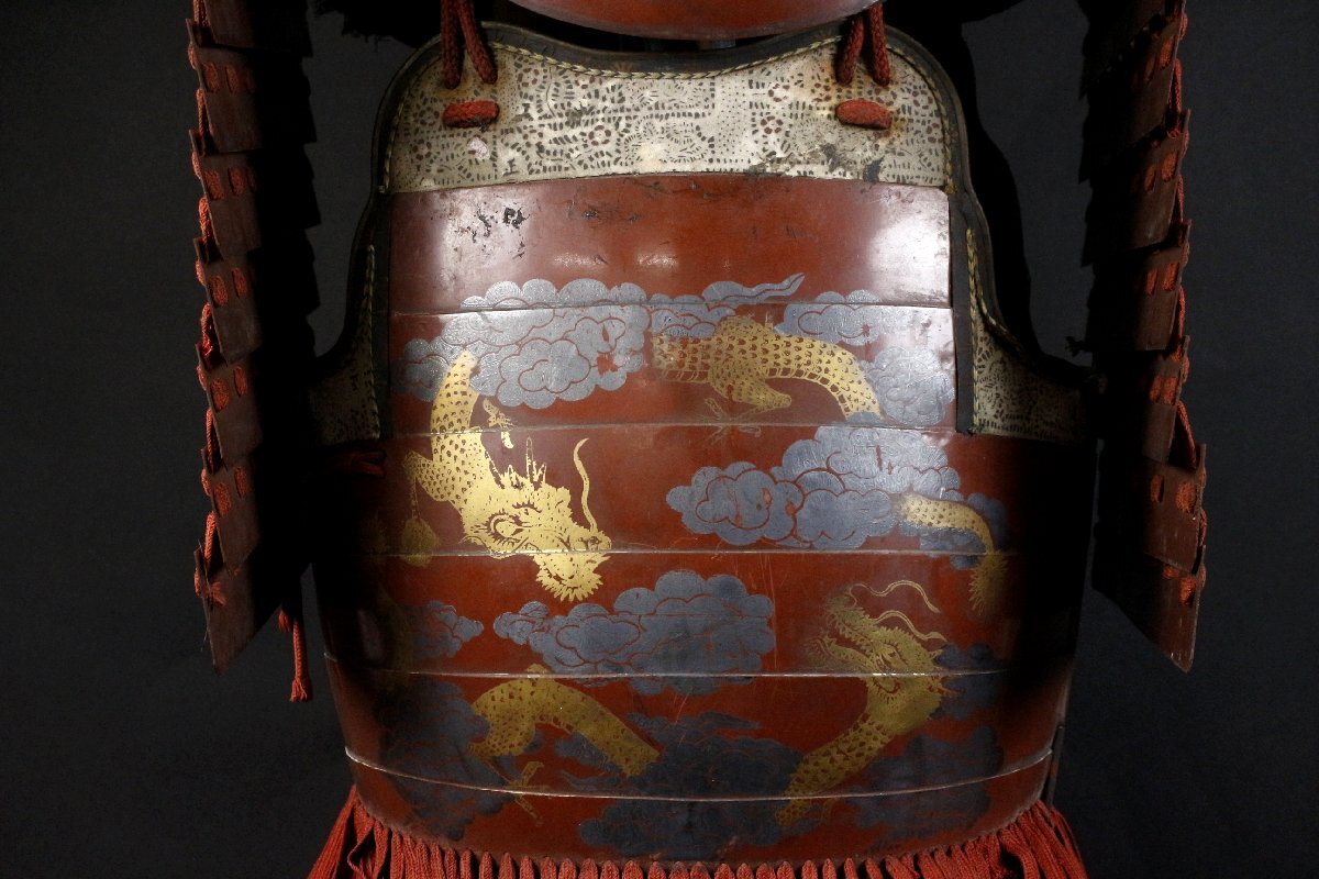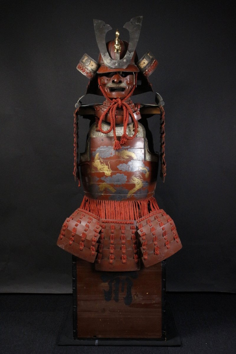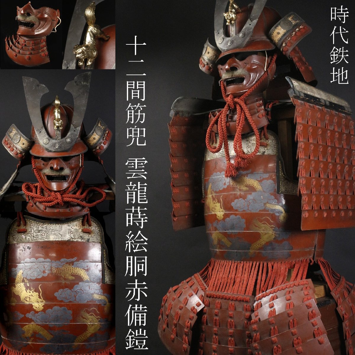 [.QEW]25.11 25110210* * * 商品詳細 * * * ここでしか出逢うことのできない唯一の美をご紹介させて頂きます。 重厚感のある朱塗で仕立てられた鎧のご紹介です。 胴には鮮やかで美しい雲龍蒔絵が施されており迫力があります。 凛々しく造形で力強く、経年を経た肌地は一層味わいが増しています。 ぴりりとした緊張感と凄みを感じる覇気に満ちた逸品です。 この機会に是非お求めください。 ■商品内容/鎧、櫃 ※写真にあるものが全てです。 ■サイズ/横57cm×縦147cm×奥行43㎝ 櫃:横42cm×高52.5cm×奥行42㎝ ■状態/経年による傷み、スレ、キズ、サビ、ヤケ、シミ、破れ、剥げ、ちぎれ、パーツ欠損、 櫃にスレ、キズ、欠け、剥げがございます。 篭手、脛当、佩楯は付属しません。 ※写真にてご確認、ご了承の上ご入札下さい。 ![]() !かんたん決済 * * * 発送詳細 * * * 入金確認後3営業日以内に発送致します。 ※直接引き取りも可能です。 60~160サイズにつきましては 佐川急便、ゆうパックのどちらかで発送いたします。 ゆうパック発送の場合、弊社の発送日から追跡サービスに問合せ番号が反映されるまで 約1日ほどお時間がかかりますのでご了承下さい。 * * * 注意事項 * * * 運送中の破損があった場合は速やかに当社までご連絡下さい。 保険を利用するのに受取連絡後に運送会社による現場での破損状況確認が必要となります。 勝手に返送されますと保険の適用外となりますのでご注意ください。 * * * * * * お問い合わせ:082-236-8669 |