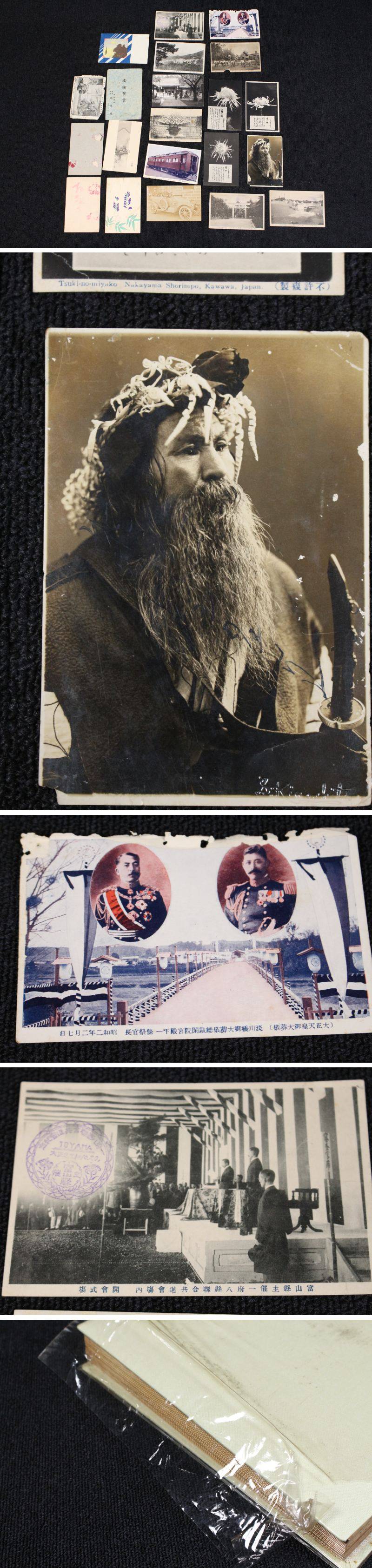 [.WP]25.11 25110538T* * * 商品詳細 * * * ここでしか出逢うことのできない唯一の美をご紹介させて頂きます。 昭和初期~中期頃の貴重な絵葉書 山出し品 当時の軍服を着た人々や、街並み、旅先での記念など、 現代では見ることのできない昭和の空気感をそのまま感じられる写真が多数収められています。 人々の暮らしぶりや表情から、当時の生活や社会の様子を伺い知ることができる逸品です。 また、半世紀以上前の消印が押された絵葉書や、観光地の風景を写した観光絵葉書なども含まれており、 歴史資料としても価値の高い内容となっています。 この機会にぜひ、コレクションや資料としてお手元に加えてみてはいかがでしょうか。 ■商品内容/アルバム4冊、ハガキ、ハガキ袋、その他計 320枚 ※写真の物が全てです。 ■状態/ スレ、傷、汚れ、ヤケ、破れ、シミ、シワがございます。 ※写真にてご確認、ご了承の上ご入札下さい。