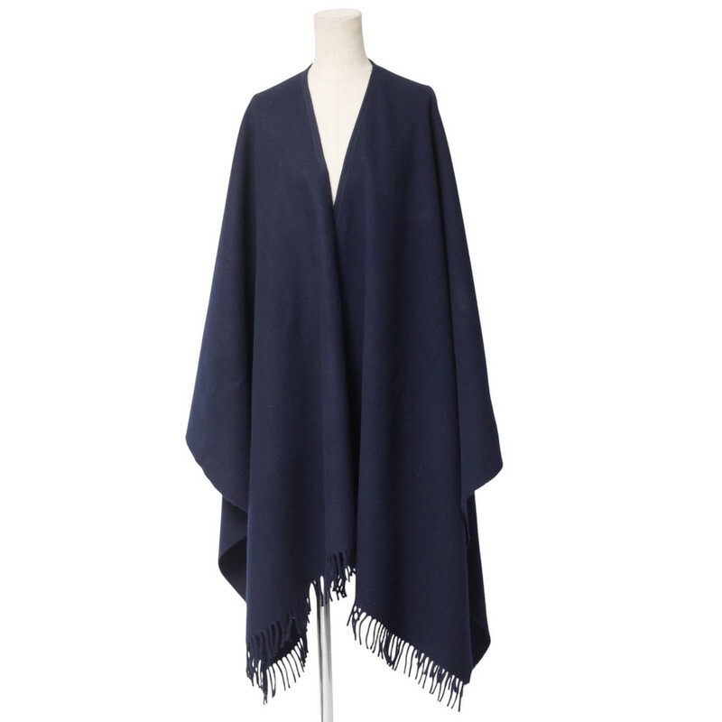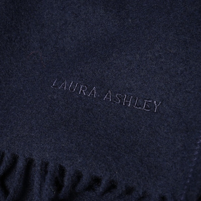 | TI6302□スコットランド製 ローラアシュレイ/Laura Ashley ウール 大判ストール ショール ケープ 羽織 コート 約97cm/最大幅約200cm 紺系 | |||