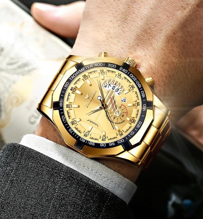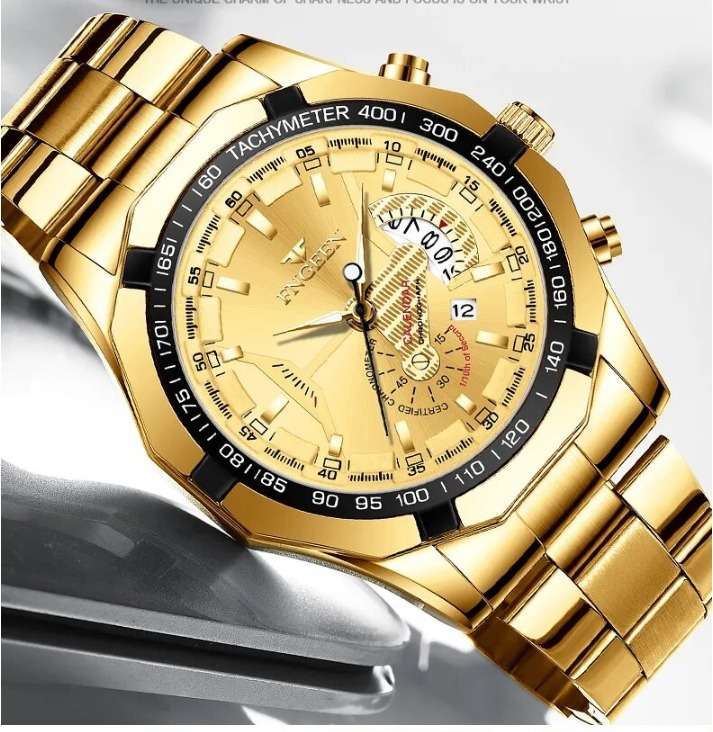 Fngeenメンズ高品質 腕時計 カレンダー クォーツ 防水 ゴールド×ゴールド 上質 質感 高品質 高級感 大人気 格安 |