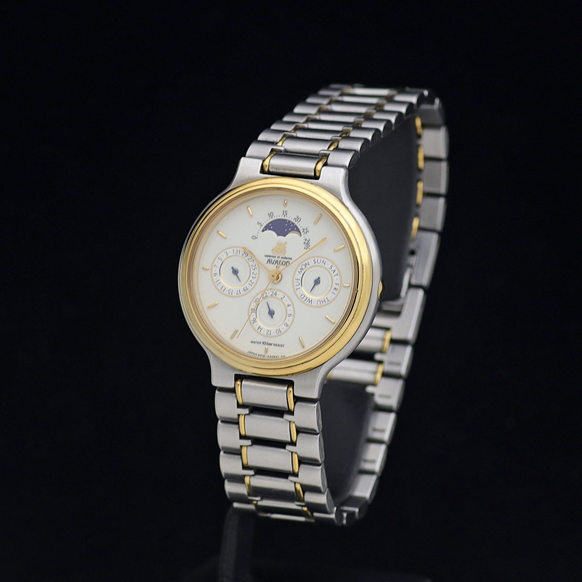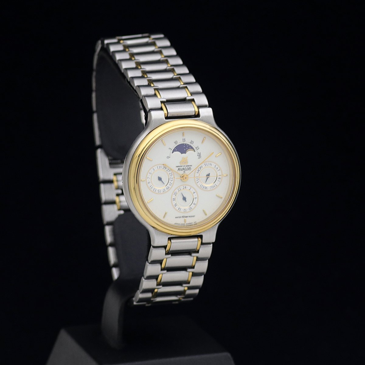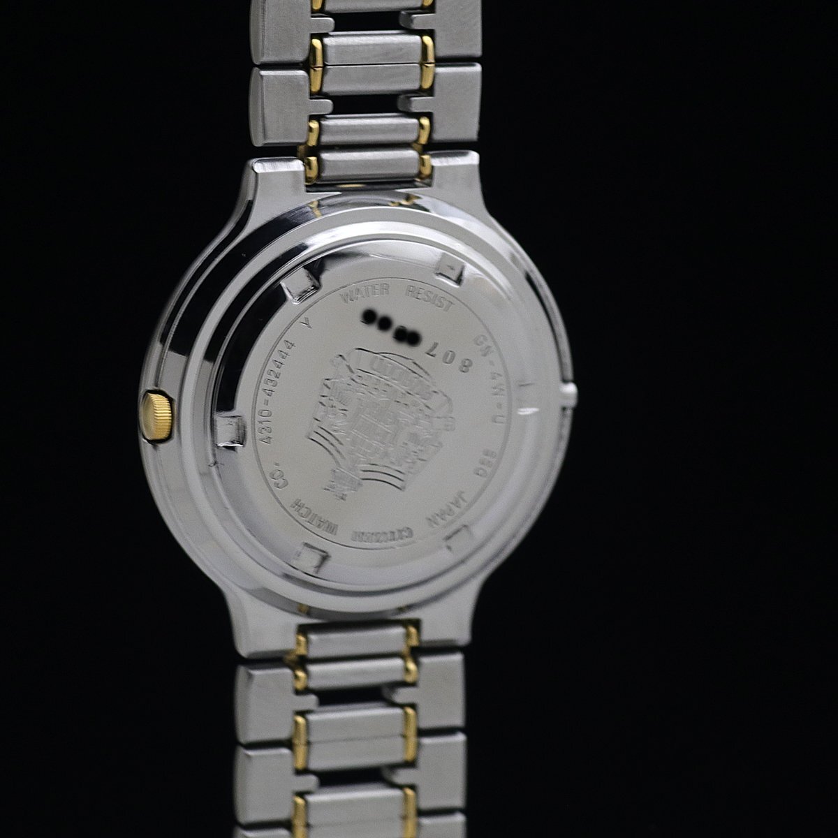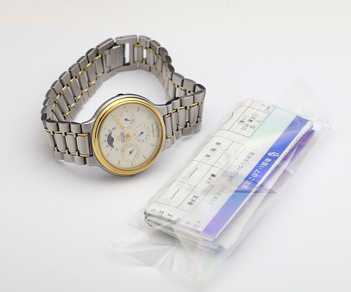 | 商品説明 | ![]() ![]() ![]() ●CITIZEN シチズン AVALON アバロン デイデイト ムーンフェイズ ●Cal:4310 ●シリアル:807**** ●メンズ/クォーツ ●ケース/ブレス素材:SS・GP/SS・GP ●文字盤色:アイボリー ●ベゼル径:33mm ●ケース径:35mm(リューズ込み) ●ケース厚:9.6mm ●腕周り:20cm ●重さ:76.7g ●定価:不明 ●付属品:なし ●ランク:A~B 【ランク詳細】 S 新品、未使用 SA 極上美品(細かな傷も少なく、とても綺麗) A 美品(細かな傷はあるが、目立つ傷がない) B USED(細かな傷はあるが、目立つ傷が少ない) C USED(細かな傷があり、目立つ傷が多少ある) J ジャンク(動作不良、一部動作不良、動作未確認) ●ベゼル、裏蓋に小さな傷、他薄い傷はありますが、目立った傷はなく美品です。 ●ガラスは無傷です。針に少しくすみがあります。文字盤はきれいです。 ●GPに剥げはありません。 ●動作確認済みで、正常に動作します。 ●2025年11月に電池交換済です。 ●新品、未使用品、かなりきれいで手を加える必要がないと判断した商品以外は、弊社もしくは専門の業者にて、専用の器材を使って洗浄、研磨等を行い、出来るだけきれいな状態でお届けできるよう心がけております。また梱包の際には除菌シートにて清掃を行った上で発送させていただきます。(一部革素材は行いません) ●ご質問、ご不明点は「m1t2m3_2006@sun.cims.jp」までご連絡ください。 | ||||||||||||||||