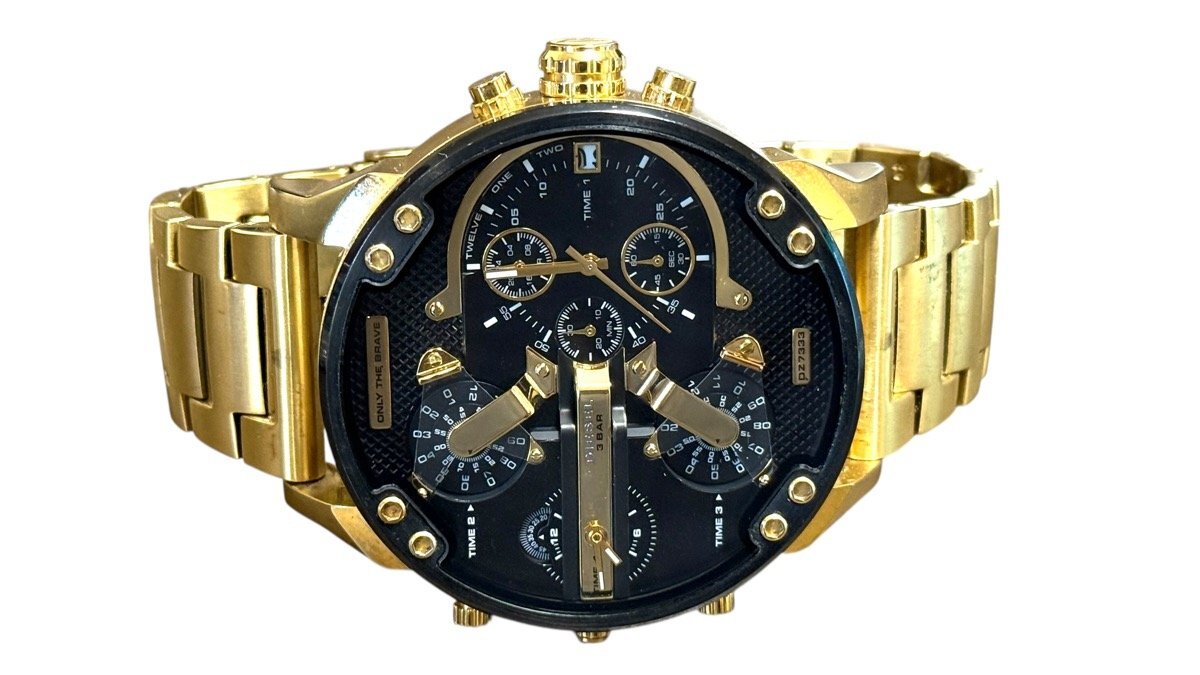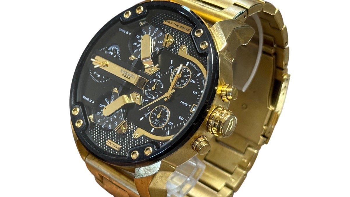 1円●ディーゼル●DZ-7333 メンズ腕時計●ロゴ ブラック×ゴールド クロノグラフ クオーツ デイト 日付 SS ビックフェイス 黒 TIME4