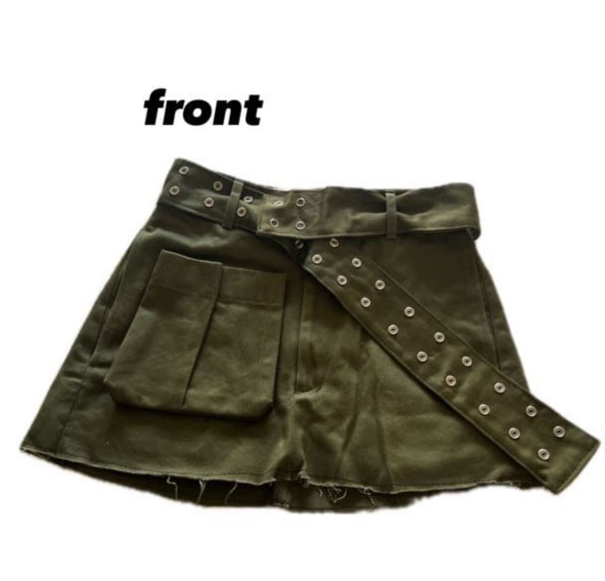 オリーブグリーンのポケット付きミニスカート、ベルト付きデザイン。| 出价者 | 信用 | 价格 | 时间 |