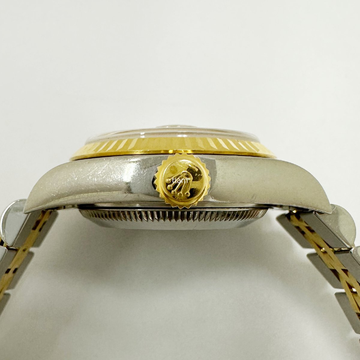 | ガラス: 目立つ傷はございません。 ダイヤル/針: ゴールドセッティングに変色がございます。 ケース/ベゼル: 小傷が多くございます。 ブレス: 小傷があり、ヨレがございます。 その他: | ||