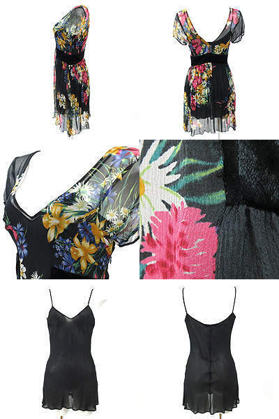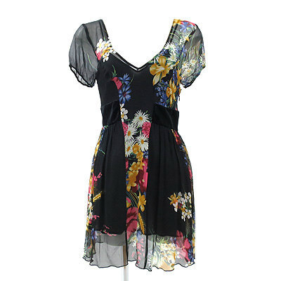 | ブルマリン(Blumarine)黒花柄半袖ワンピース I40 | ||||