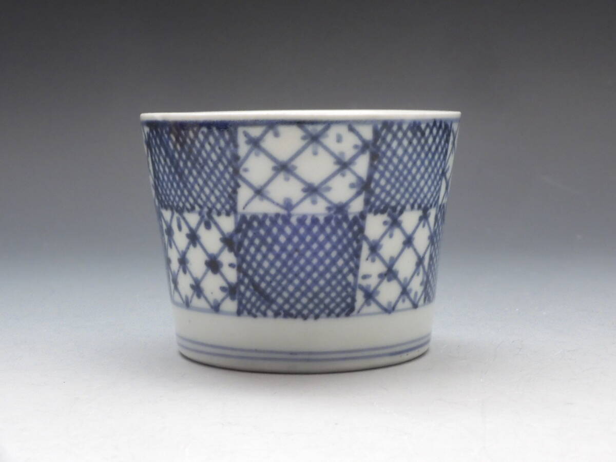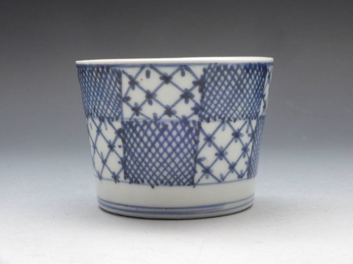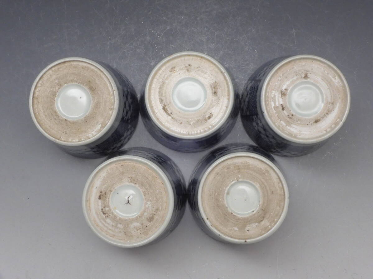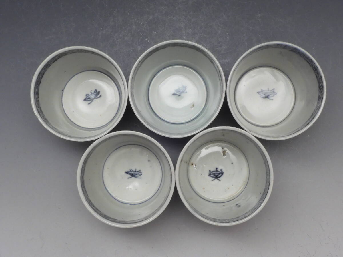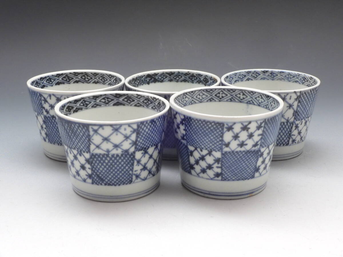 | ○梗○古伊万里 染付 網目文 蕎麦猪口 5客 無傷 江戸期 K236◇ |