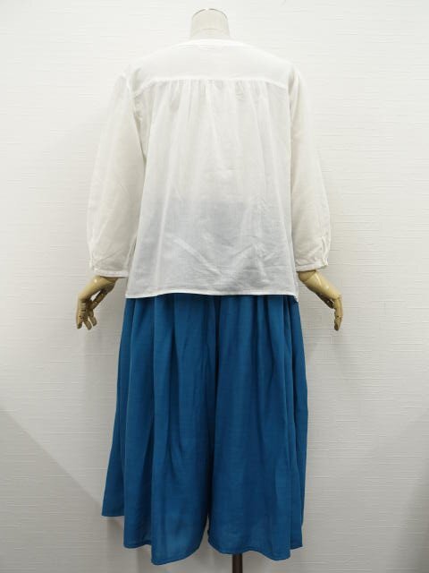 長袖ブラウス+スカーチョ コーディネート上下2点セット L相当 ホワイト/ブルー系 カジュアル系 20代・30代
