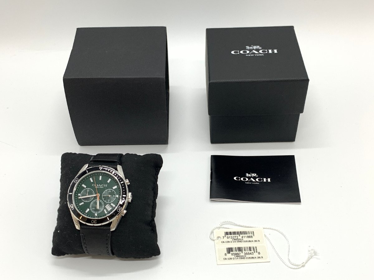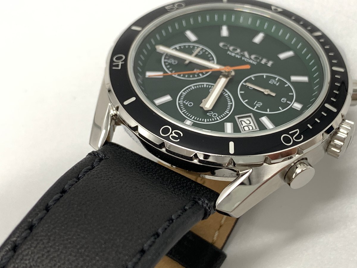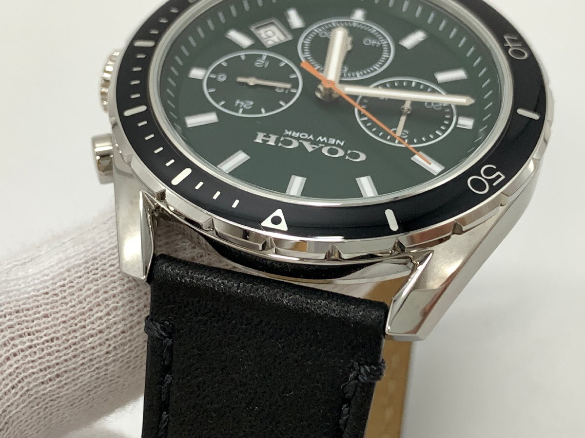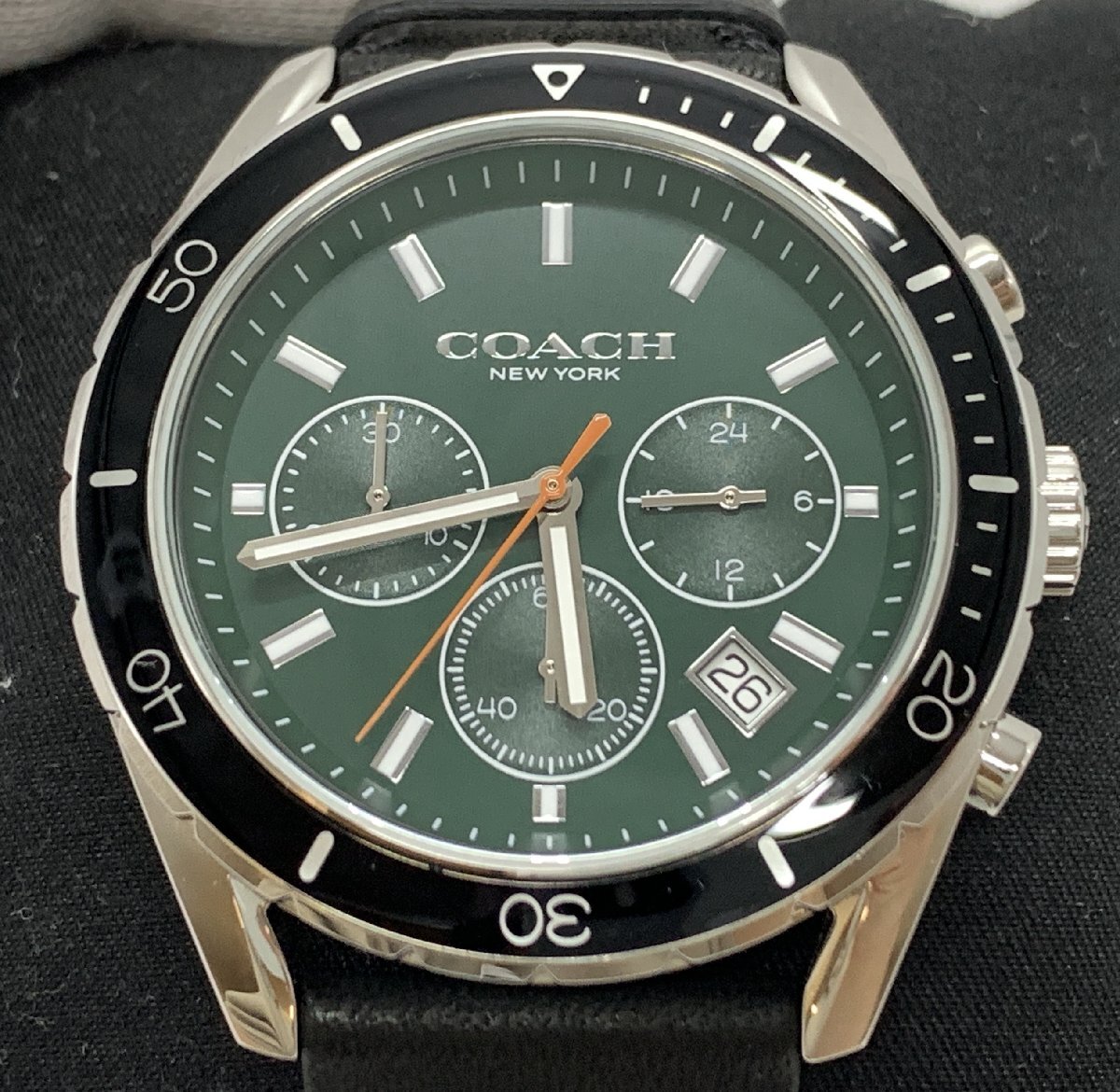 | 【商品名】COACH コーチ クロノグラフ メンズ クォーツ式 腕時計 型番:14602512 ブラック×グリーン×シルバー系 ☆良品☆[77-1103-2E10] | |||||