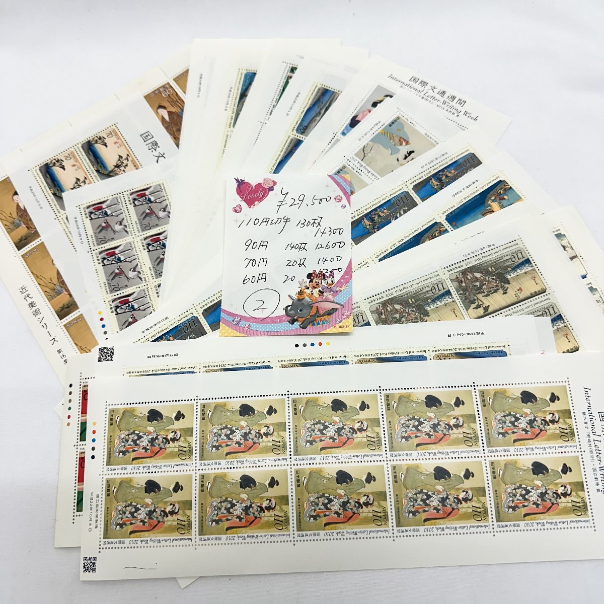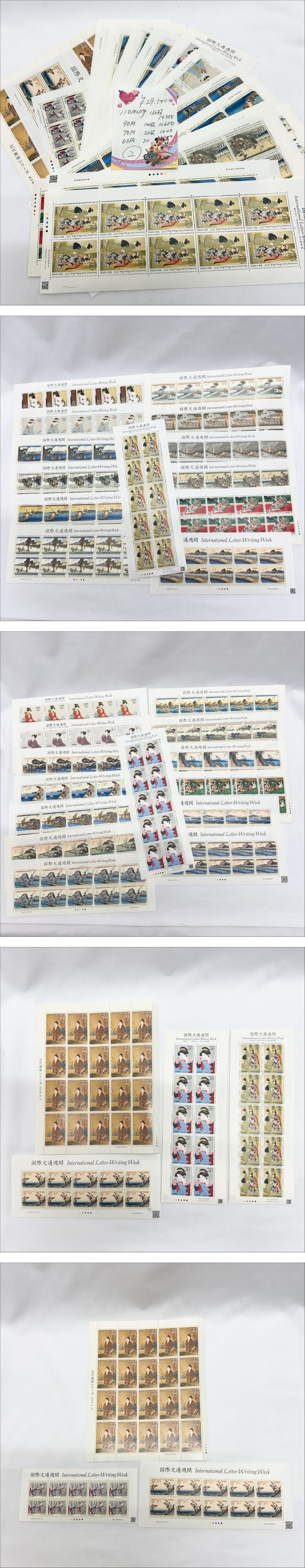 1円~記念切手 シート 額面29,500円 110円×130枚と90円140枚他 美品 | |||