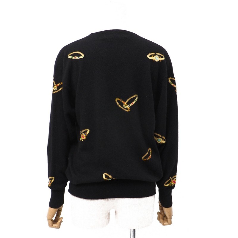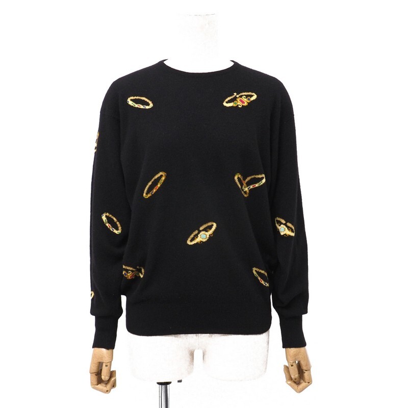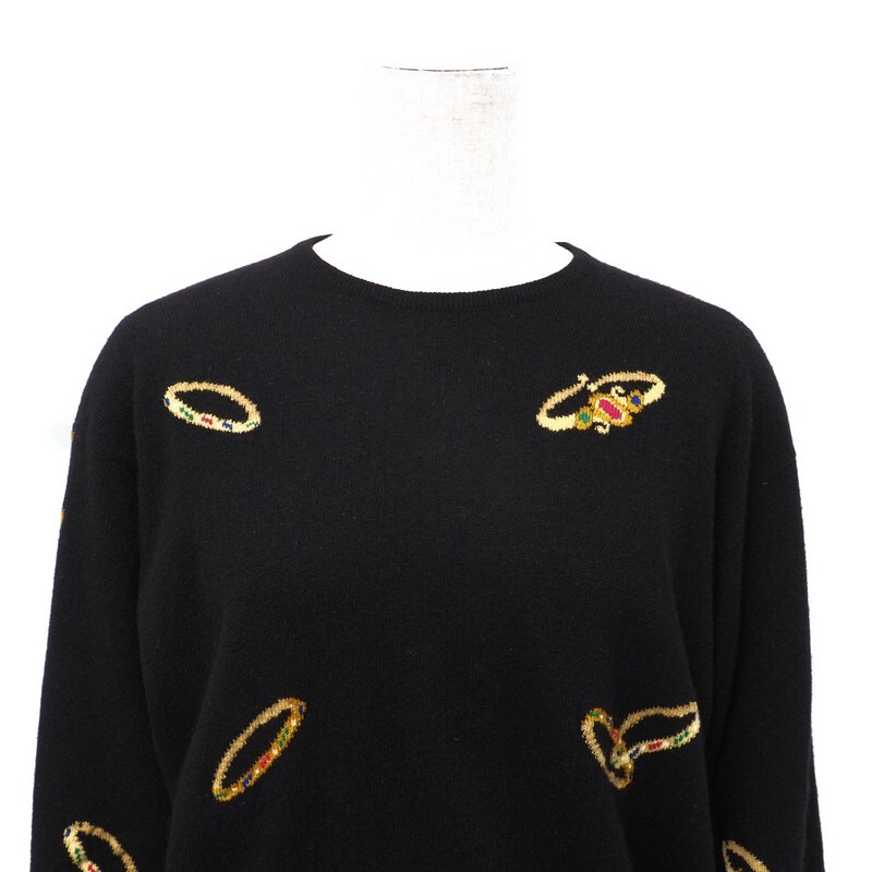 | GS0791▼スコットランド製*バランタイン/BALLANTYNE*カシミヤ100% リング柄 クルーネック ニットセーター サイズ40 ブラック | |||