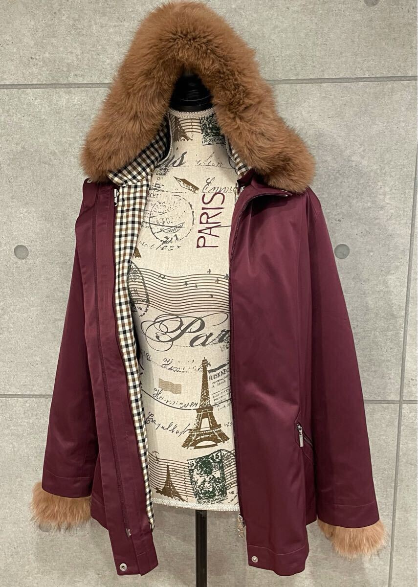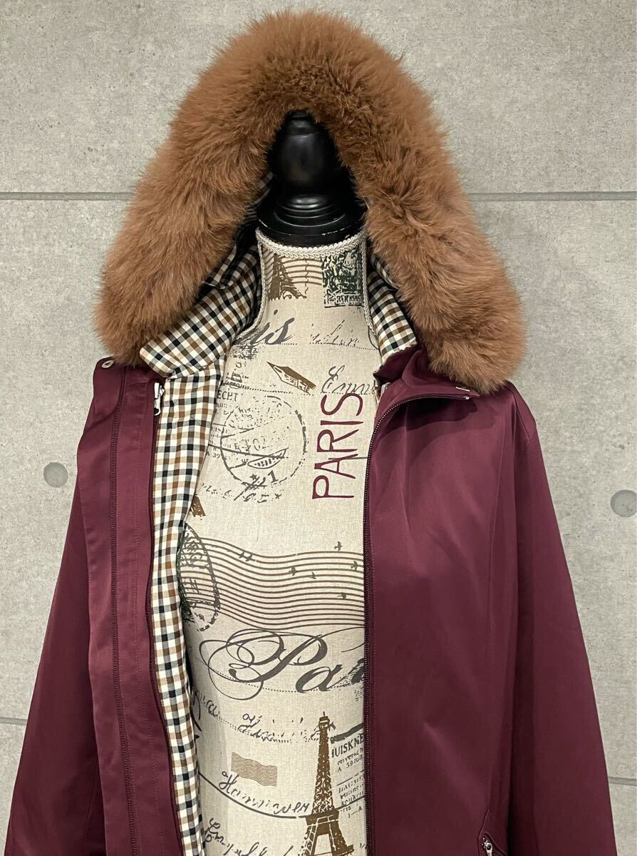 Aquascutum アクアスキュータム 3WAY 中綿コート インナー付き フォックスファー ワインレッド