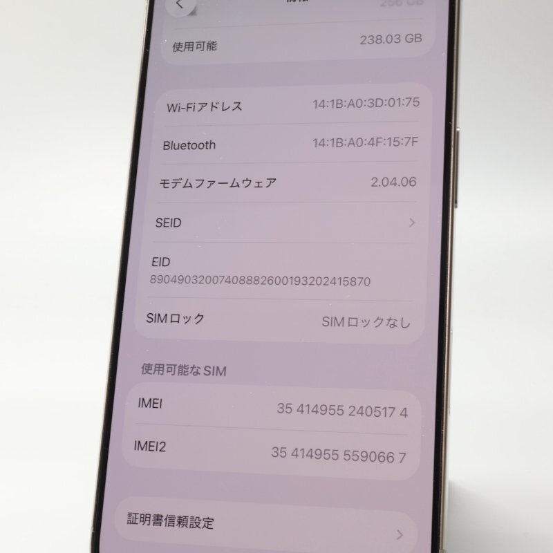 店頭展示品です。■機種 : iPhone16 Pro 256GB ナチュラルチタニウム A3292 3N746J/A