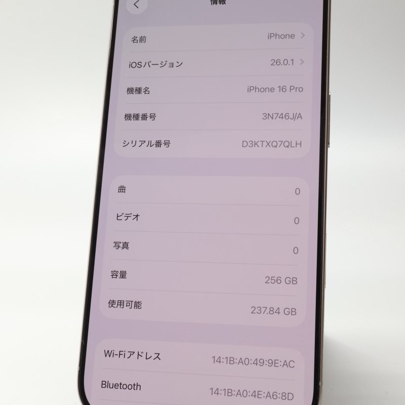 店頭展示品です。■機種 : iPhone16 Pro 256GB ナチュラルチタニウム A3292 3N746J/A