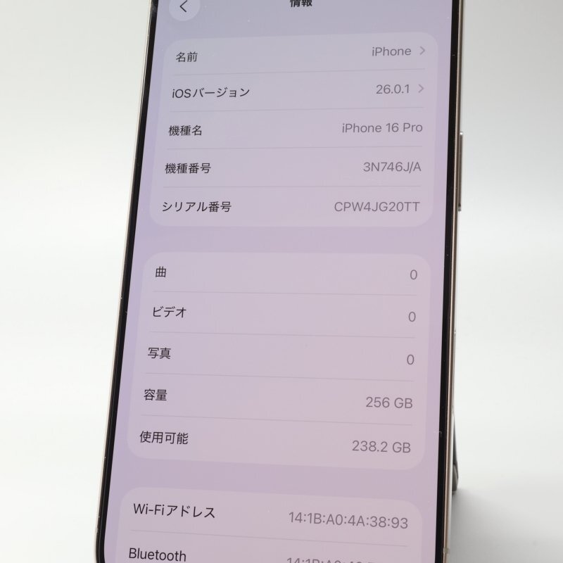 店頭展示品です。■機種 : iPhone16 Pro 256GB ナチュラルチタニウム A3292 3N746J/A