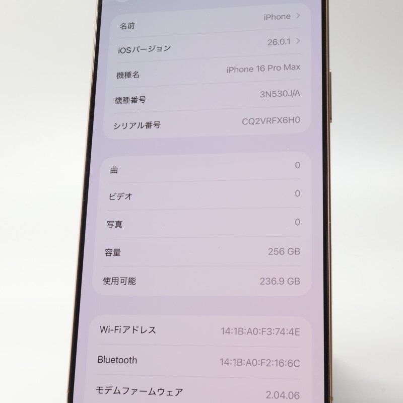 店頭展示品です。■機種 : iPhone16 Pro Max 256GB デザートチタニウム A3295 3N530J/A