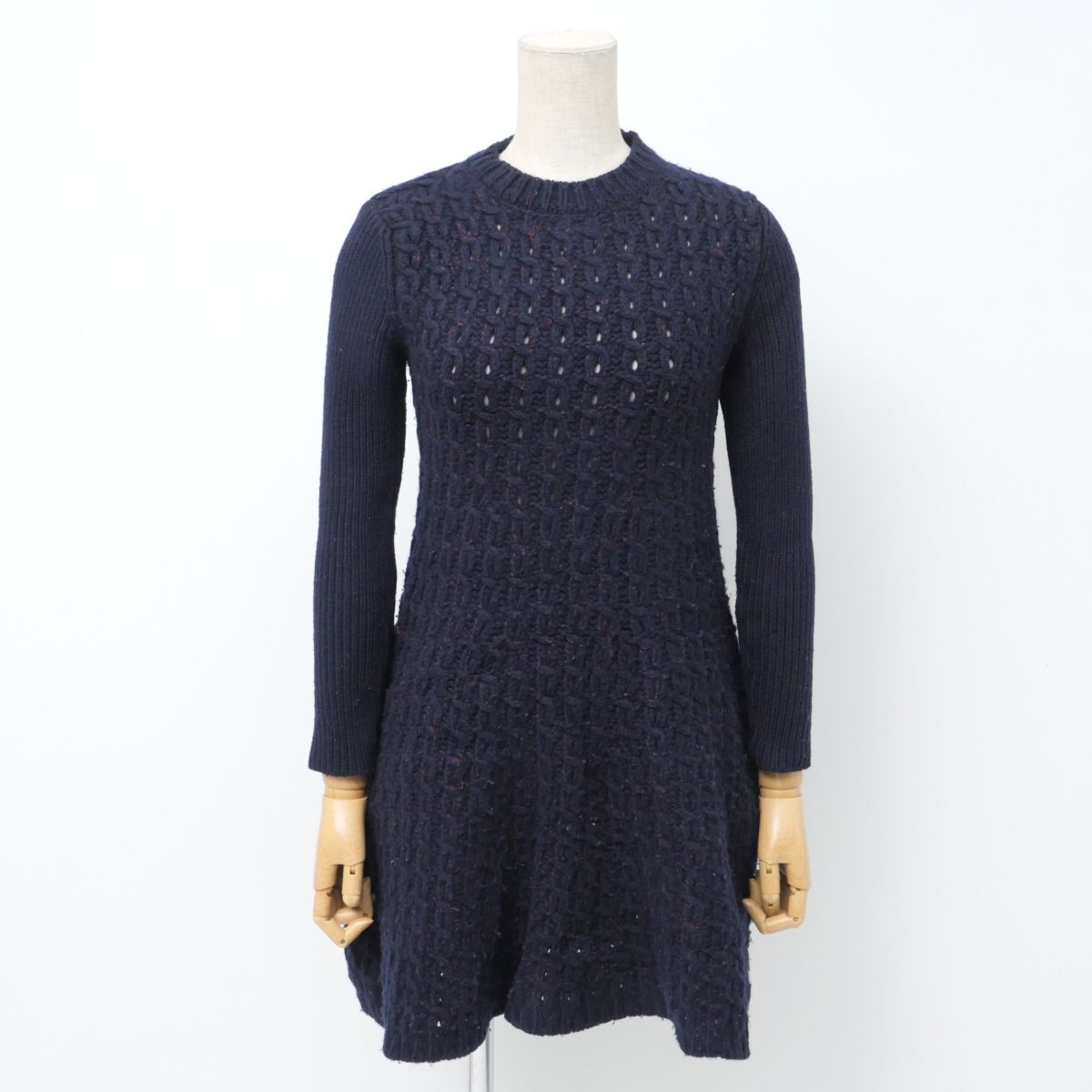 MH3814☆ステラマッカートニー STELLA McCARTNEY ニットワンピース フレアワンピース 長袖 厚手 ウール ネイビー系 サイズ38 [浏览原始页面]