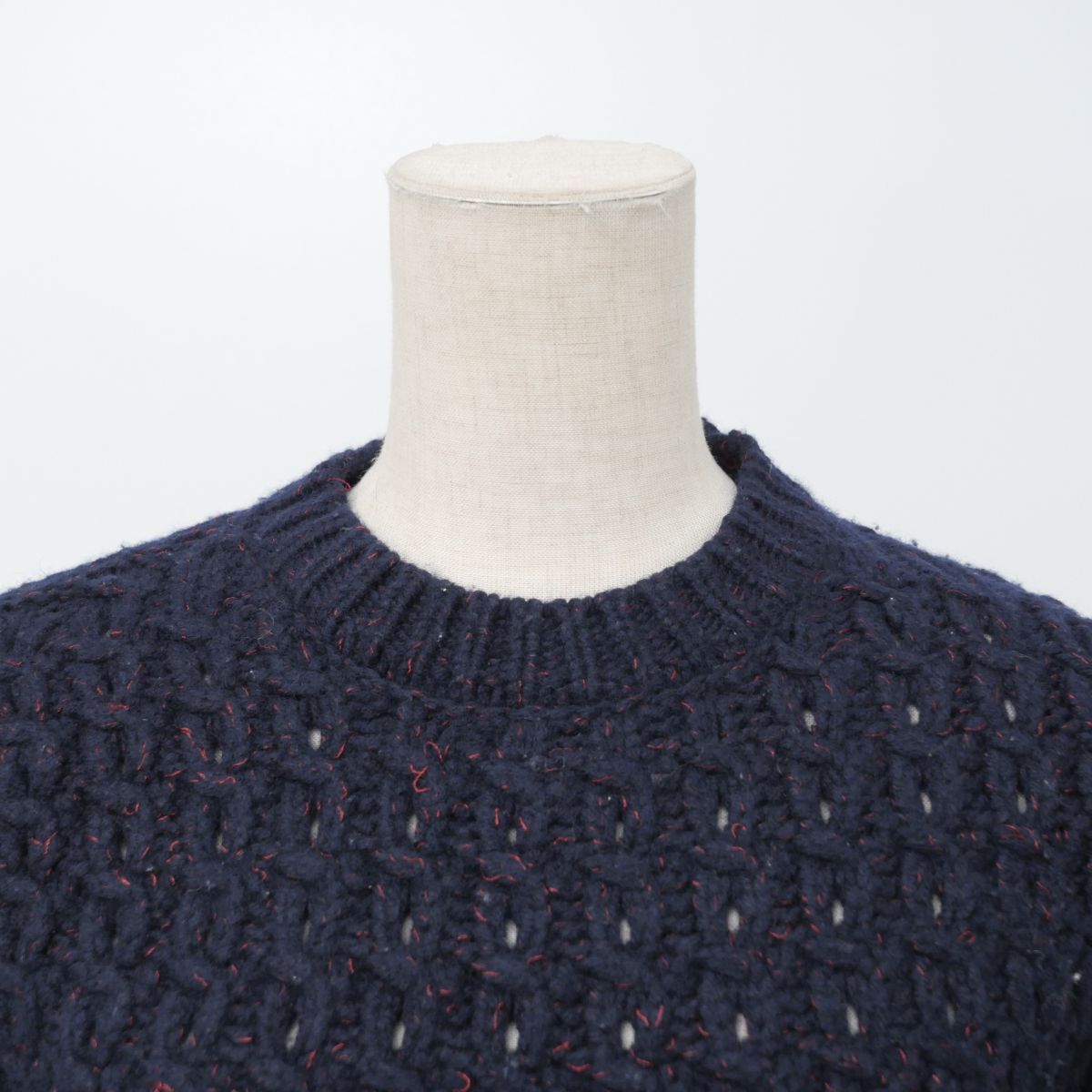 太糸と細糸がミックスされた、ざっくりとした柄編みがポイントの一着。
