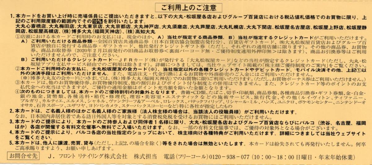 Jフロントリテイリングの大丸・松坂屋お買い物ご優待カードです。| 出价者 | 信用 | 价格 | 时间 |