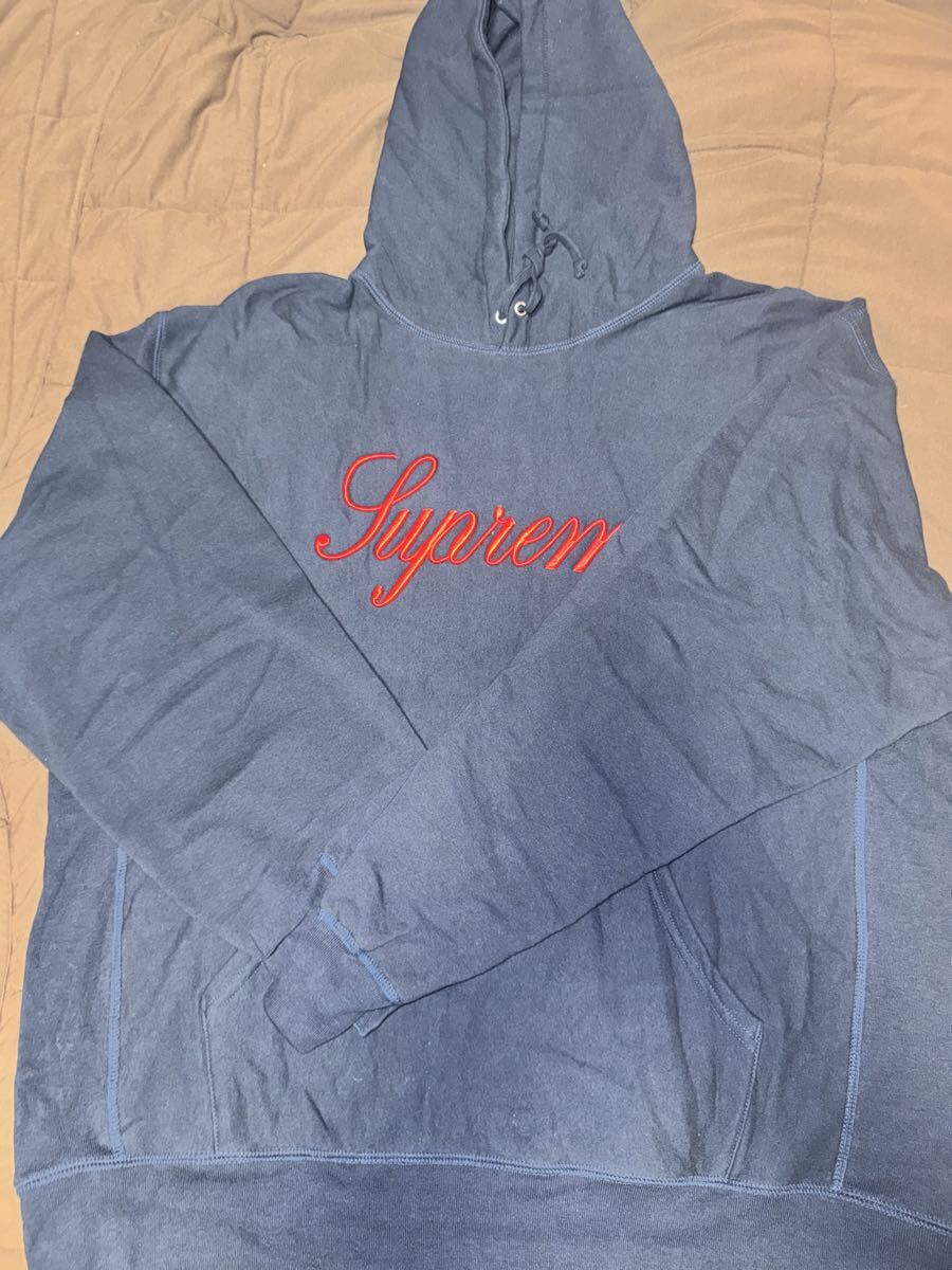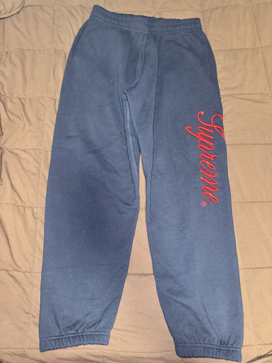 SUPREME Embroidered Script Sweatshirt&Sweatpants セットアップ シュプリーム Sweatshirt パーカー Hooded ネイビー Navy XXL&M [浏览原始页面]