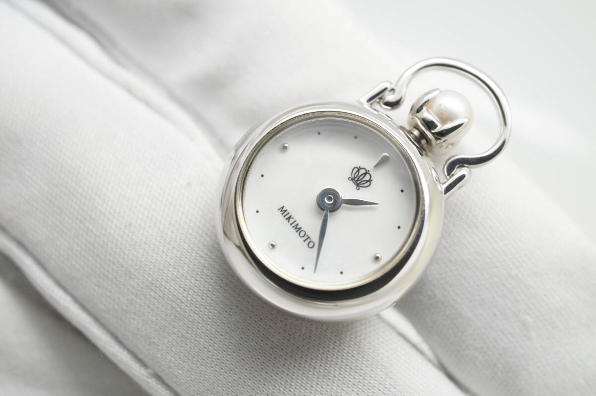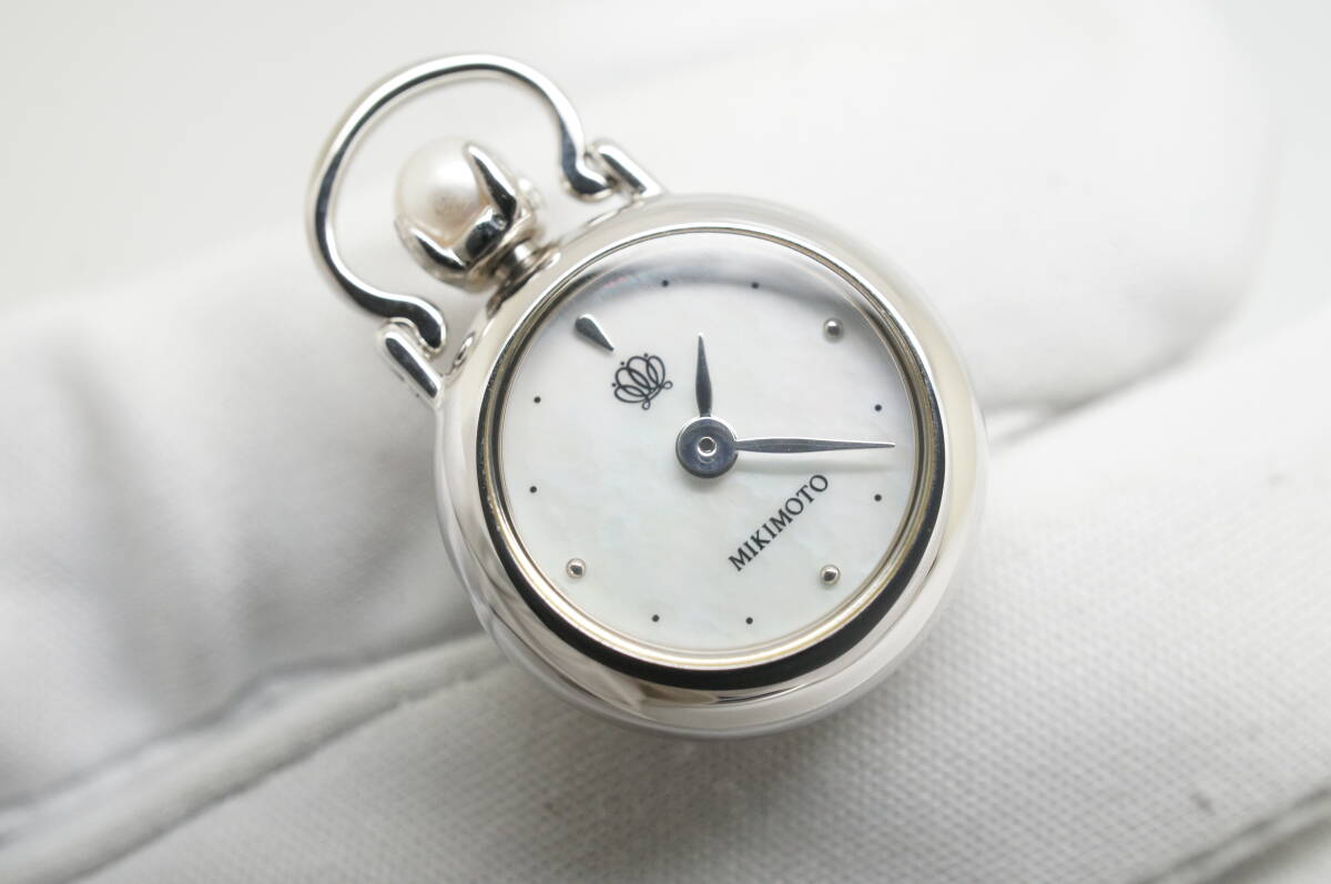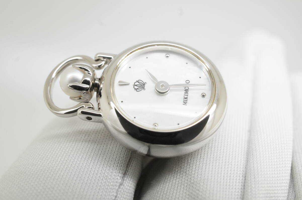 K161●作動良好 未使用デッドストック MIKIMOTO ミキモト SV925 真珠 パール×シェル文字盤 ピンブローチ 懐中時計 シルバー925 クォーツ [浏览原始页面]