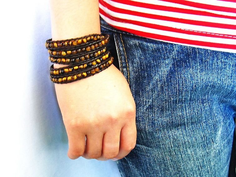 | ■商品名: タイガーアイ 4mmビーズ レザー ラップブレスレット ■商品ID: L01-95-1 ■商品重量:約 26.5g ■商品サイズ:粒直径約:4mm 長約:840mm 【タイガーアイ(虎目石)】 タイガーアイは角閃石の一種のクロシドライト(青石綿)に石英が染み込んで酸化し、茶色や黄金色になったものです。 研磨すると光の当たり具合によってキャッツアイ効果、またはシャトヤンシー効果と呼ばれる猫の目のような光の筋が見られ、その輝きと黄金色と褐色の縞模様が虎の眼に見えることからこの名前が付けられました。 ベーシックな金茶色の他にも様々な色合いがあり、温度が高い環境で生成されると深い赤みを帯びたレッドタイガーアイになります。 この他にクロシドライトが酸化せずに生成された灰色のグレータイガーアイは「ウルフズアイ(狼目石)」、濃青色をしたブルータイガーアイは「ホークアイ(鷹目石)」と呼ばれ、タイガーアイとは区別される場合があります。 タイガーアイは視野を広げ正しい判断力と行動力で成功へ導くとされ、ルチルクォーツに匹敵するほどの金運・仕事運アップストーンとして高い知名度と人気を誇っています。 また男性イメージの強い石ではありますが、強力な邪気払い・トラブル回避の効果も持ち合わせていますので女性にはストーカーやセクハラ対策のお守りとしても有用です。 ⇒ タイガーアイをもっと詳しく ◆ワンポイント情報 タイガーアイは塩分によって劣化しやすいので汗が付いた場合は柔らかい布で拭き取るようにし、塩を用いた浄化は行わないように注意しましょう。 |