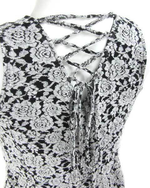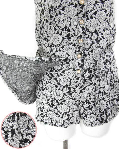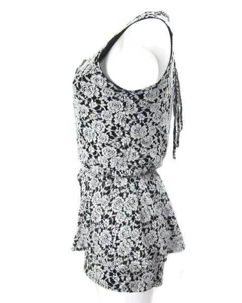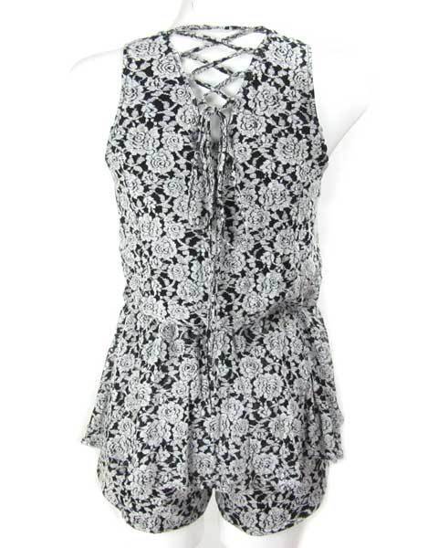 | デザイン性のあるオシャレなオールインワン。背中部分は編み上げデザインで、インナーを楽しむことができます。両サイドから後ろにかけてお腹周りにはオーバースカートの様なデザインになっています。 |