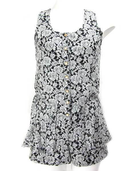 | コメント | デザイン性のあるオシャレなオールインワン。 背中部分は編み上げデザインで、インナーを 楽しむことができます。 両サイドから後ろにかけてお腹周りには オーバースカートの様なデザインになっています。 |