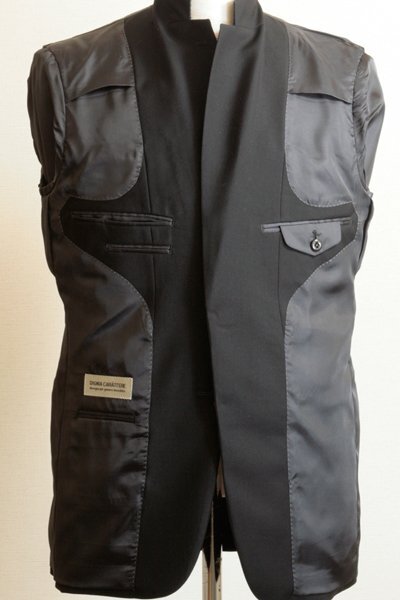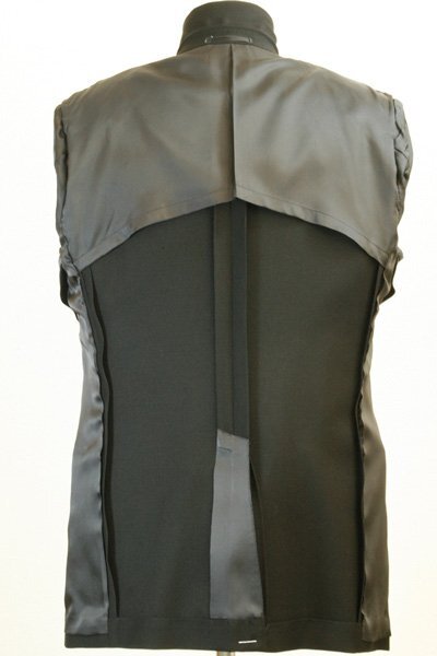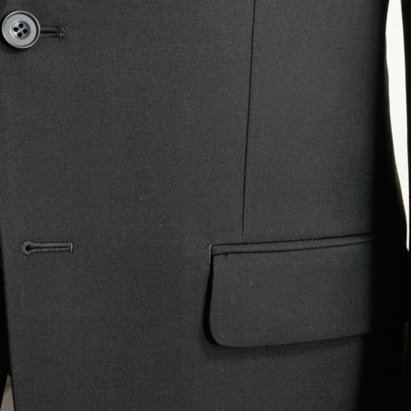 ■ジャケット:台場、センターベント、背裏背抜き、胸箱ポケット、左右腰ポケット(フラップ付両玉縁)、袖開きみせ、ピンポイントステッチ、左右内ポケット、携帯ポケット、タバコポケット、