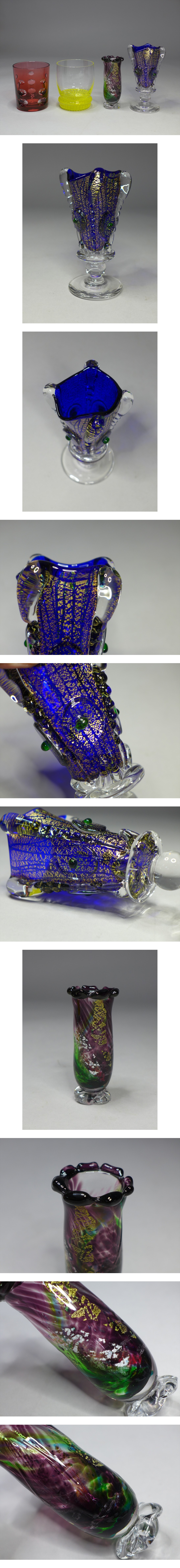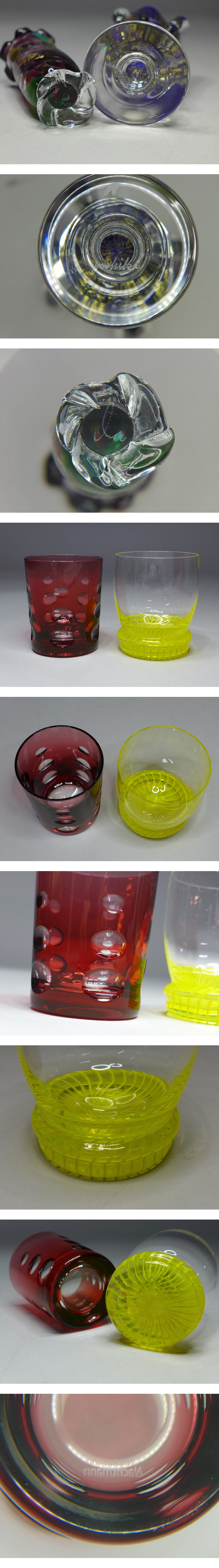 上野良樹作品高さ約13,7cmです。素晴らしい意匠のガラス製品です、お好きなかたどうぞ!サイン有りは3点(上野ほか)で黄色の物は無銘です。おおむね良好です、内容や状態などは画像参照でお願いします。