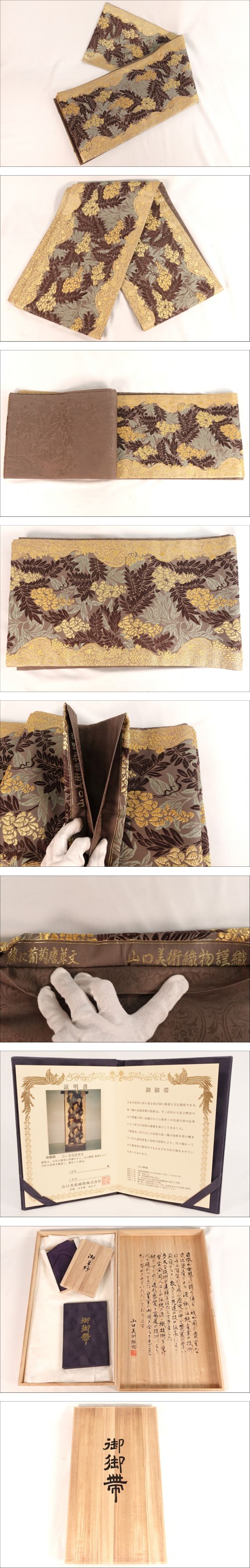唐織錦 山口美術織 帯(葡萄唐草文)箱・袱紗・保証書付 着物 日本製 礼服 フォマール和服小物 コレクション ファッション | |||